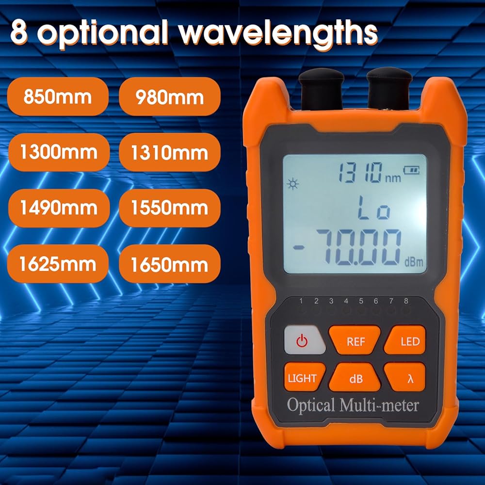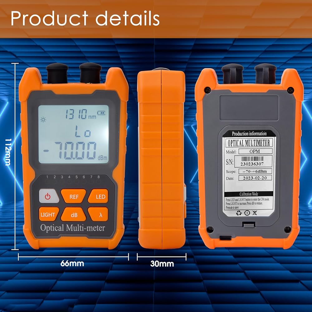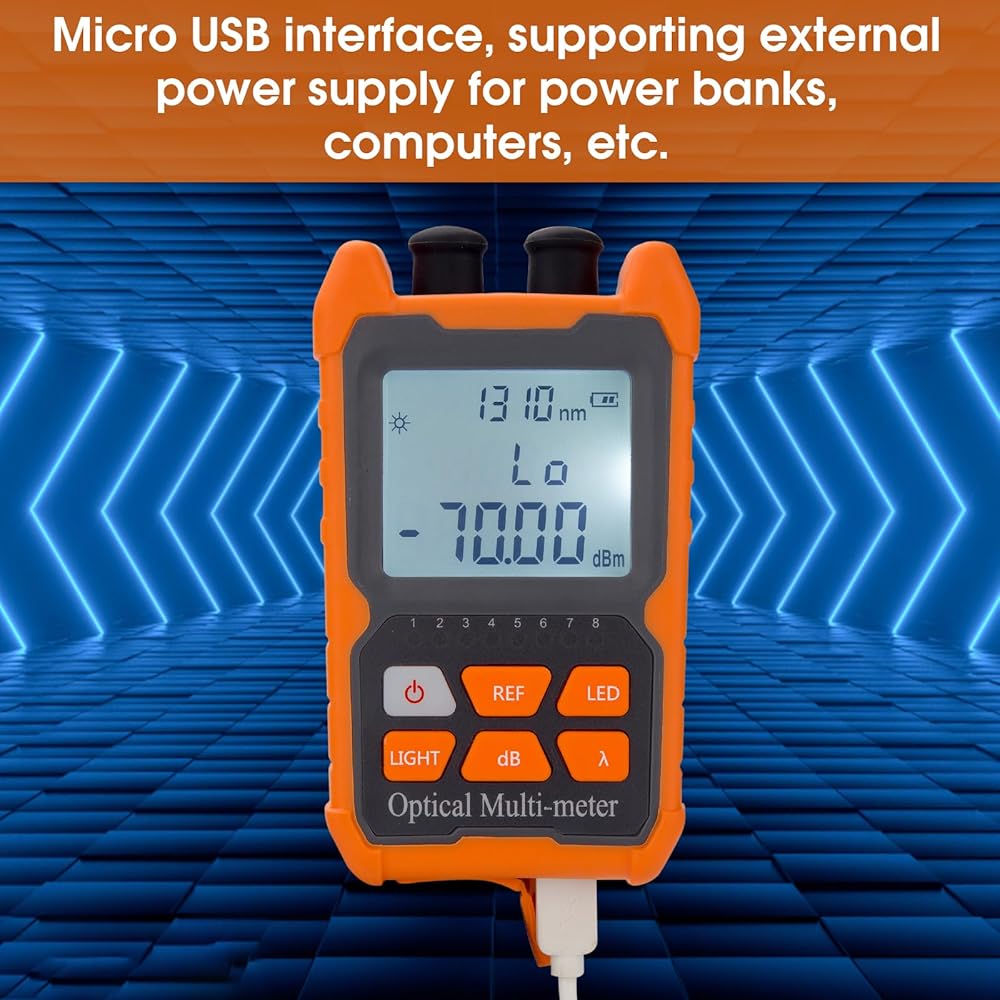 • [اختبار الألياف الضوئية القوي] يمكن لاختبار الألياف الضوئية الصغير قياس 8 أطوال موجية قياسية 850/980/1300/1310/1490/1550/1625/1650 نانومتر، نطاق الاختبار: -70 ديسيبل مللي متر~+6 ديسيبل ميلي واط.