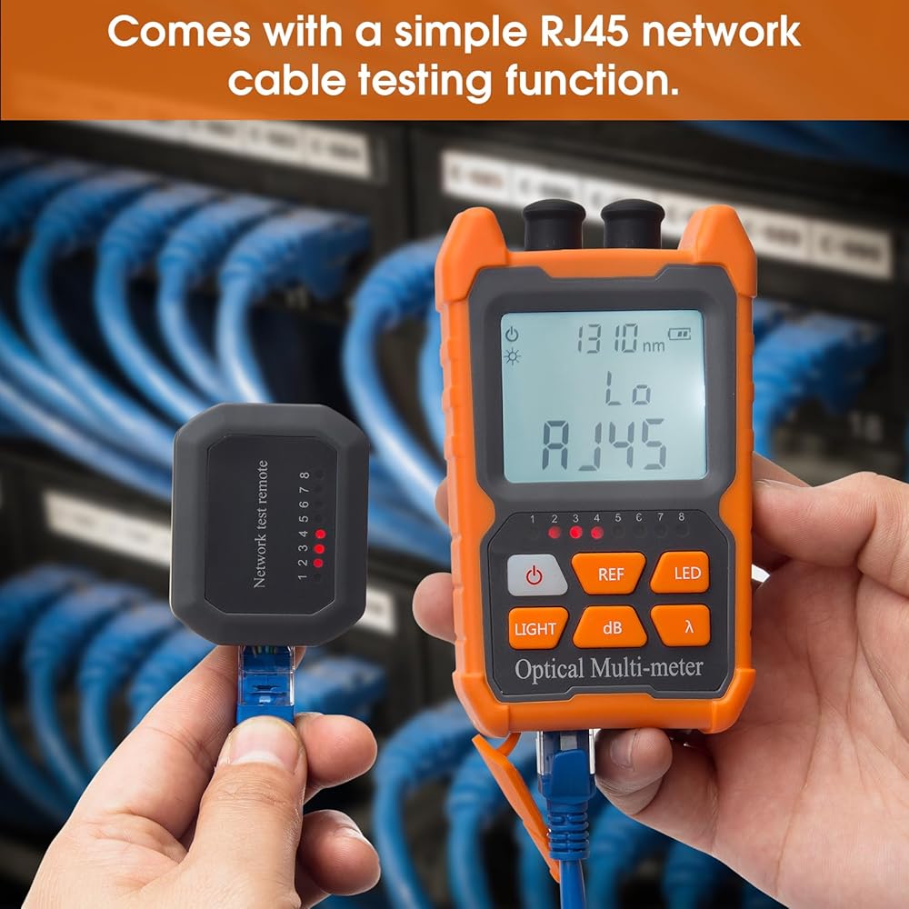 • [أدوات ألياف بصرية متعددة الوظائف] وظيفة 4 في 1 تتضمن عداد الطاقة الضوئية، ومحدد الأخطاء البصرية 2 ميجاوات، واختبار شبكة RJ45 وإضاءة LED. باستخدام 2 بطاريات AAA (غير مدرجة).