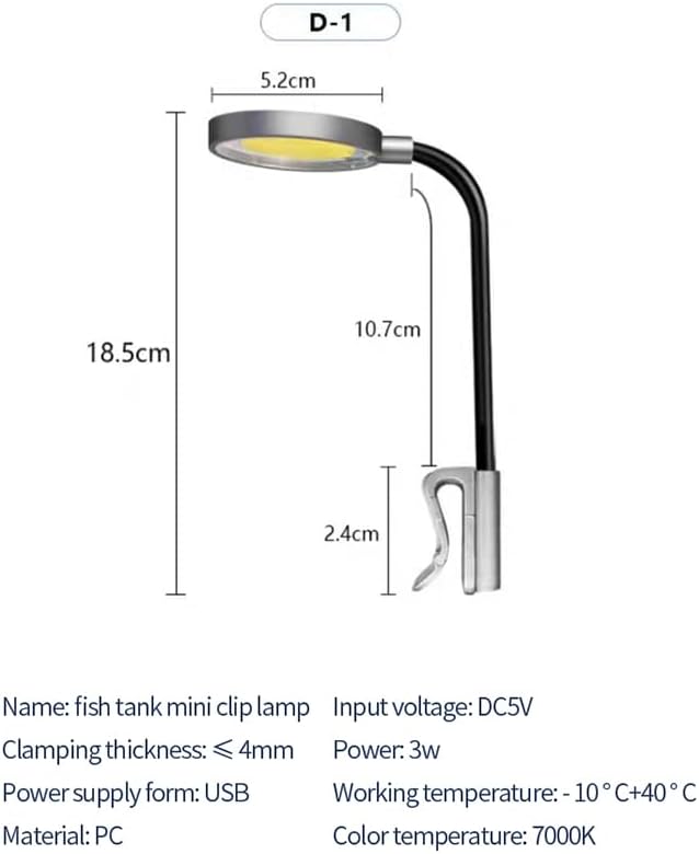 【مشبك إضاءة قابل للتعديل بزاوية 360 درجة】يتميز مشبك إضاءة حوض السمك الصغير الخاص بنا بذراع ناعم، مع هذا الذراع الناعم، يمكنك الحصول على الزاوية التي تريدها، ليمنح حوض السمك الخاص بك شعورًا مختلفًا. استخدام مصدر طاقة الواجهة، يمكنك استخدام ضوء خزان الأسماك من خلال الأجهزة المختلفة التي تدعم مصدر الطاقة مثل الطاقة المتنقلة.