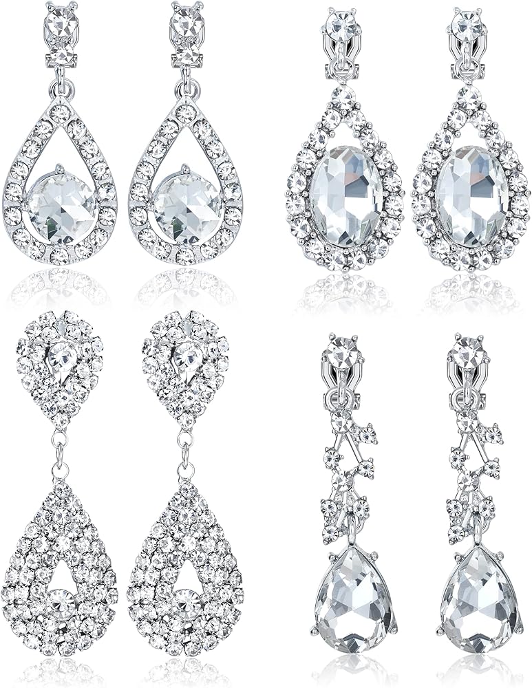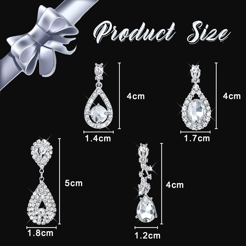 【أقراط فضية أنيقة بمشبك】انطلق في رحلة من الأناقة مع مجموعتنا الرائعة المكونة من 4 أزواج من الأقراط الفضية ذات المشبك للنساء. تتميز بـ 12 تصميمًا فريدًا من الأقراط ذات المشبك من حجر الراين على شكل دمعة إلى الأقراط المتدلية على شكل قلب وأقراط على شكل ثريا تشبه الماس، كل زوج في مجموعة الأقراط هذه ينضح بالفخامة والتنوع، مثالي لأي مناسبة، بدءًا من رقصات الزفاف الرسمية إلى النزهات غير الرسمية.