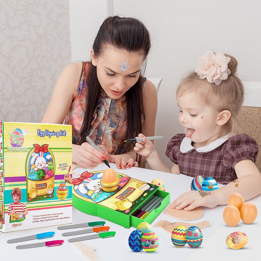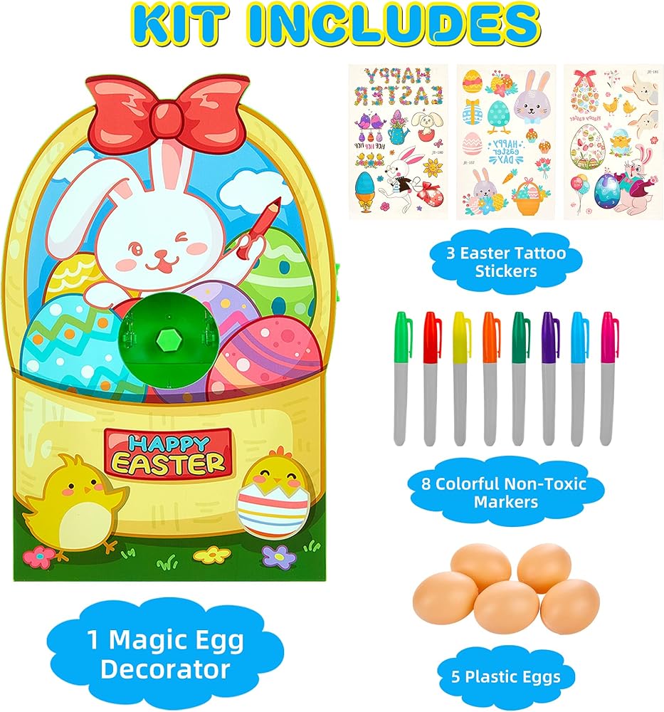 مجموعة تزيين بيضة عيد الفصح، طقم صبغ بيضة عيد الفصح اللطيف على شكل أرنب DIY، مجموعة الفنون والحرف اليدوية مع آلة تزيين، أقلام تلوين غير سامة، بيض بلاستيكي وملصقات هدايا عيد الفصح للأطفال