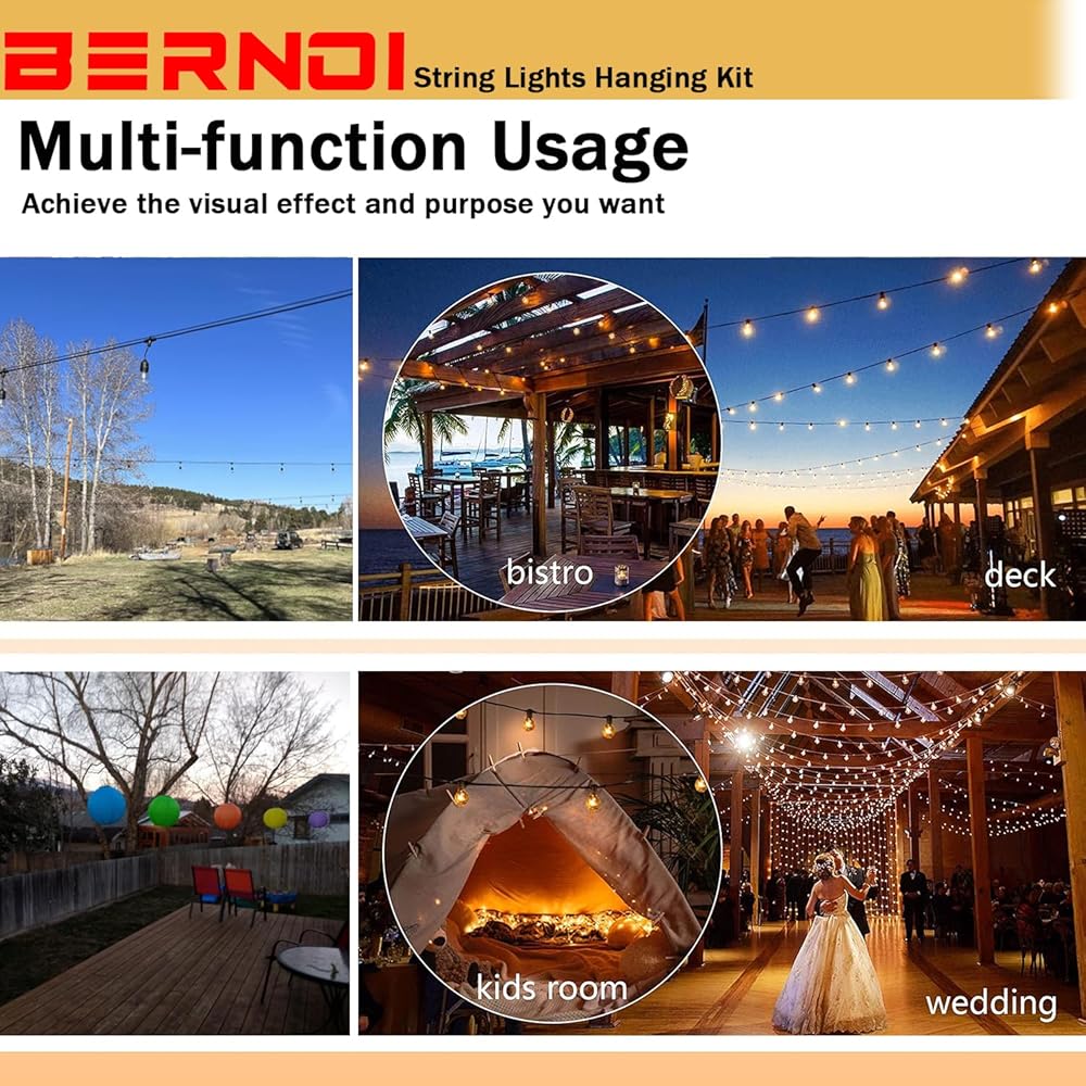 【مجموعة تعليق سلسلة إضاءة الفناء الكاملة المُحدثة】تم اختبار كل جزء من مجموعة سلسلة إضاءة الفناء من بيرنوي عدة مرات قبل اختيارها: ✅ مقاومة للصدأ، ✅ أوزان التحميل، ✅ قوة كسر تصل إلى 480 رطل. ✅ سهلة الاستخدام. إنها متينة بما يكفي لتعليق مصابيح السلسلة شديدة التحمل في المناطق المفتوحة الكبيرة، مما يمنع ترهل أضواء السلسلة التجارية.