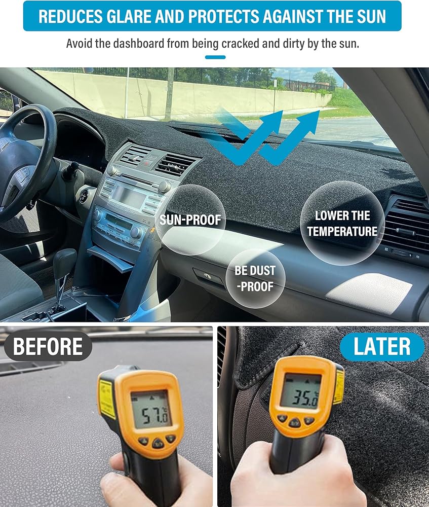 [ملاءمة مثالية] تناسب لوحة غطاء لوحة القيادة سيارتك تمامًا ولا تؤثر على الاستخدام العادي للوظائف الداخلية للسيارة. لكن جميع فتحات إزالة الجليد مقطوعة مسبقًا، وعادةً ما يتم تغطية السماعات، اعتمادًا على مدى تعقيد السماعات و/أو ما إذا كان يمكن رفع السماعات. ومع ذلك، نظرًا للمادة القابلة للتنفس، يمكن أن يمر الصوت جيدًا عبر الغطاء.