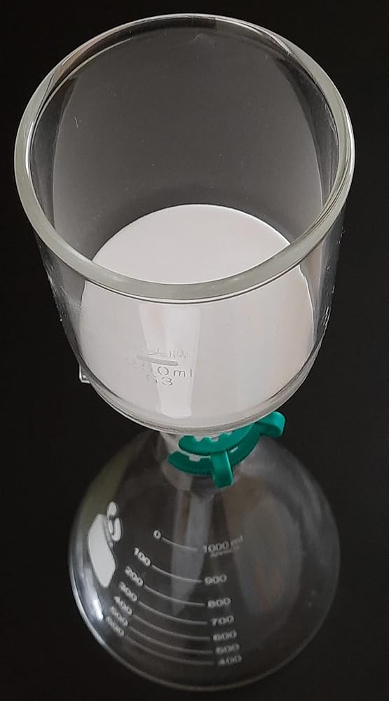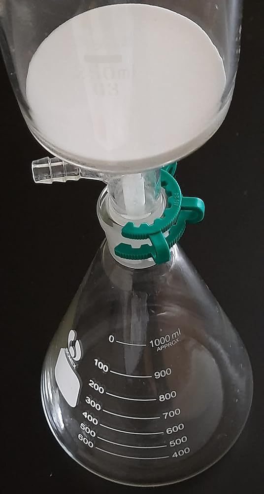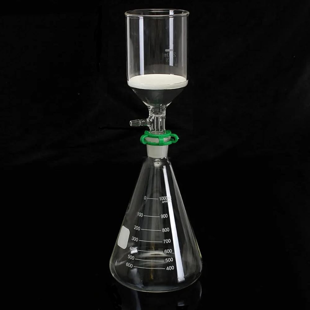 سعة الدورق المخروطي: 1000 مل، سعة قمع بوشنر: 250 مل، G3 - زجاج بوروسيليكات، وصلة خرطوم مسننة 10 ملم
