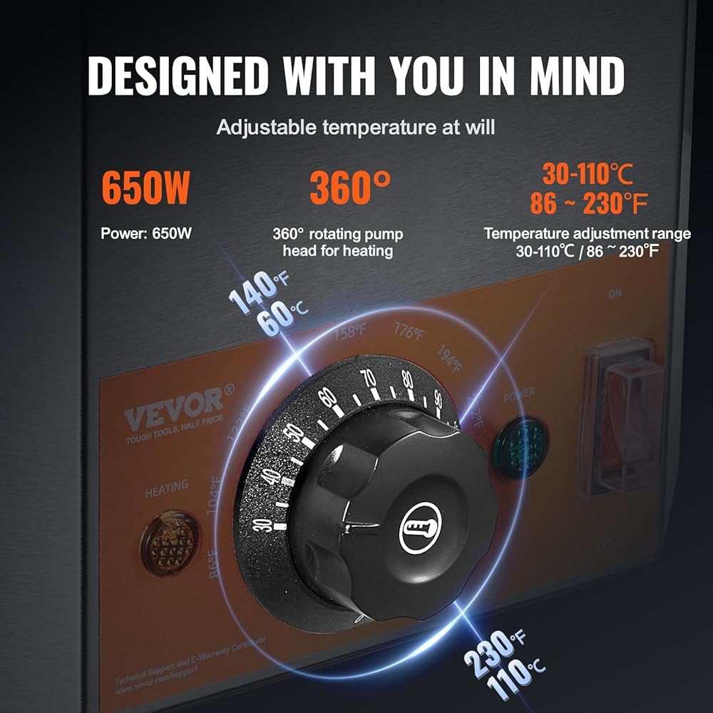 تحكم مريح في درجة الحرارة: زر دوار لسهولة ضبط درجة الحرارة (30-110 درجة مئوية / 86-230 درجة فهرنهايت). يتم توصيل كتلتين من عناصر التسخين بقدرة 650 وات بالمضخة لضمان أن درجة حرارة التوابل مثالية. 2 أضواء مؤشر تظهر حالة العمل مباشرة. لا تفوت أي خطوة مع سخان الفدج الساخن الخاص بنا.