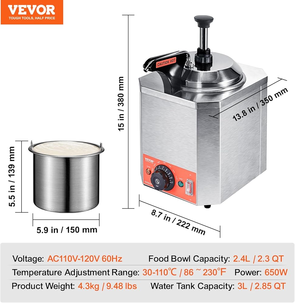 تفاصيل مصنوعة خصيصًا لك: يمكن لكتلة التسخين تجنب تجمد الصلصة. أربع وسادات مضادة للانزلاق تضمن التشغيل السلس ولا يحتاج موزع جبن الناتشو الخاص بنا إلى التجميع، مما يوفر لك الكثير من الجهد والوقت.