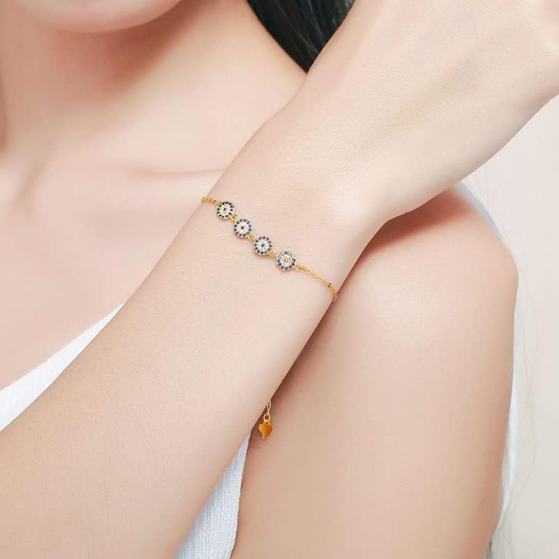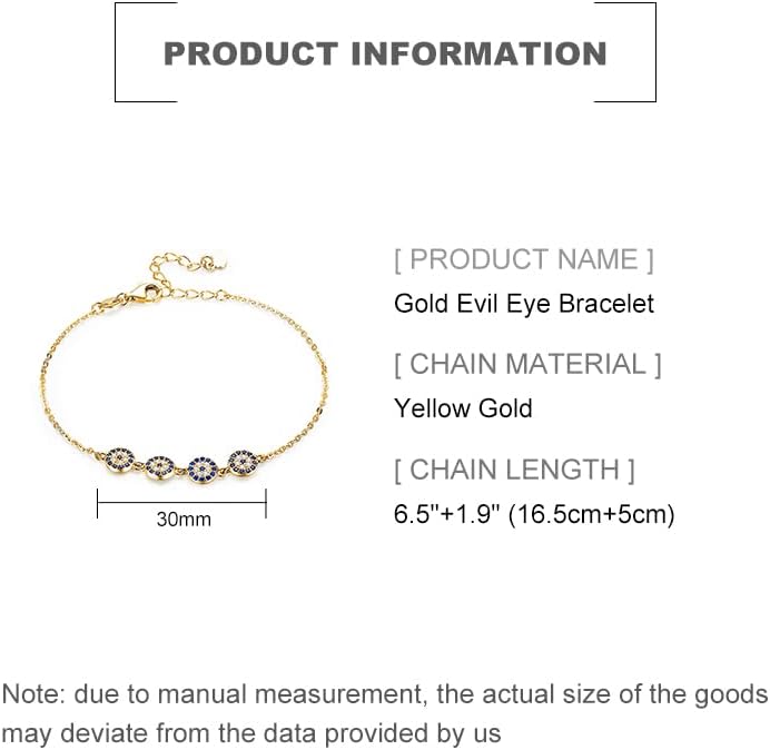 【تفاصيل المقاس】يبلغ عرض العيون الشريرة الأربعة حوالي 1.18 بوصة (3 سم)، وطول السلسلة 8.4 بوصة (21.5 سم، بما في ذلك سلسلة الذيل القابلة للتعديل 5 سم)، مناسبة لجميع النساء.