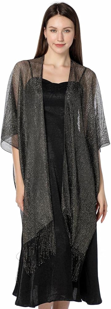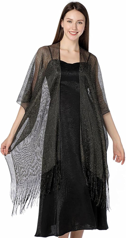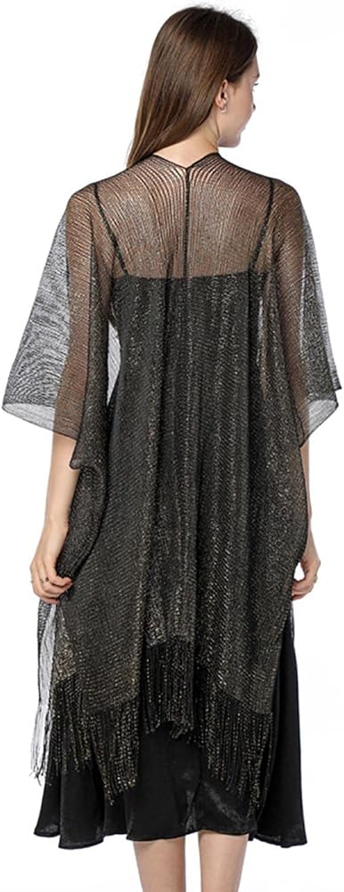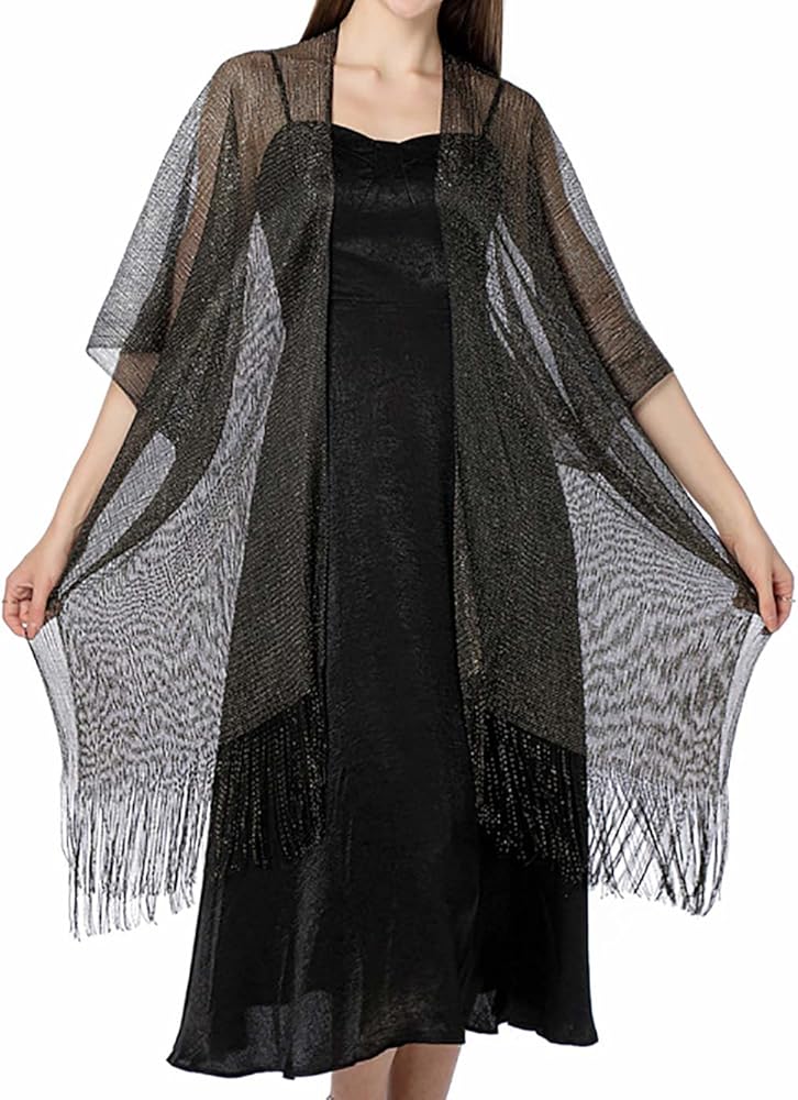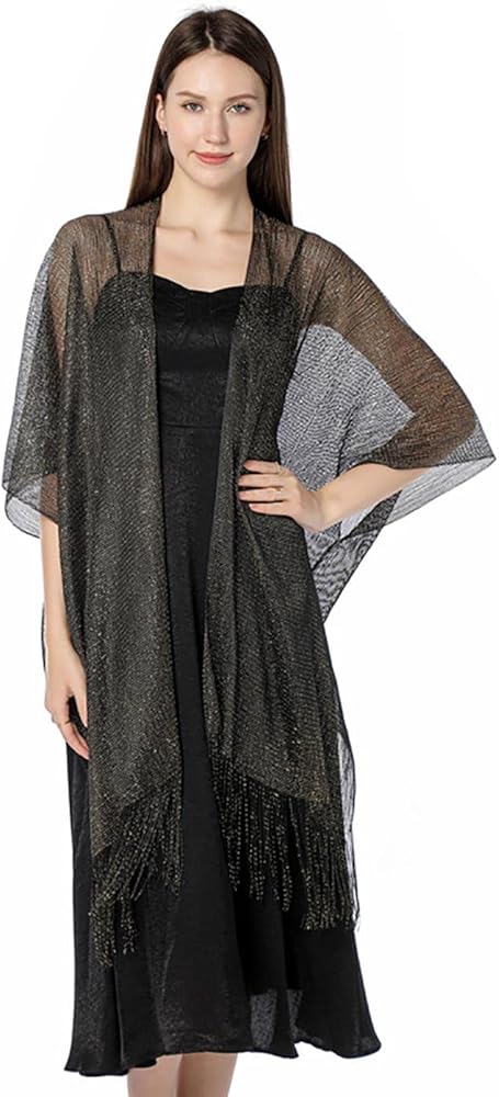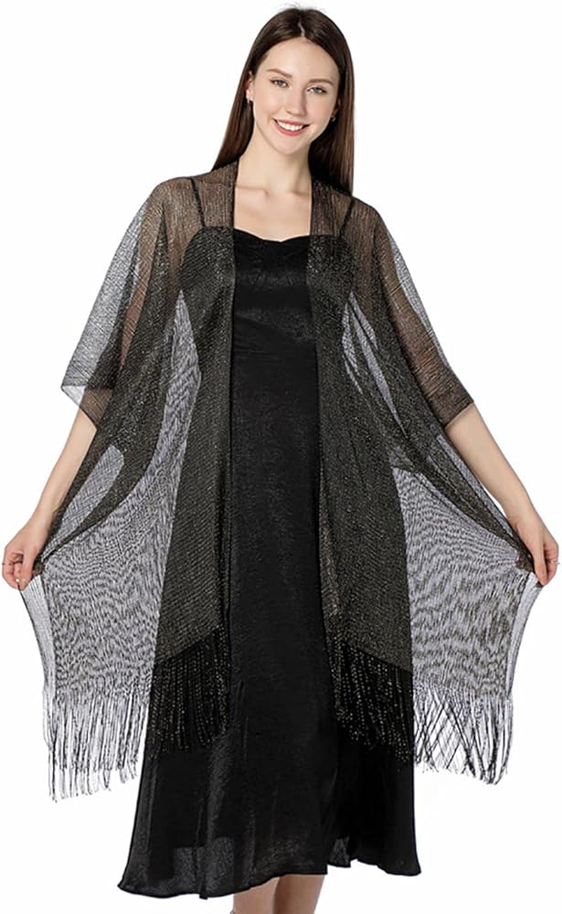 • سترة فستان السهرة مصنوعة من البوليستر. مزيج الخيوط المعدنية المتلألئة والأهداب الرقيقة ملفت للنظر للغاية.