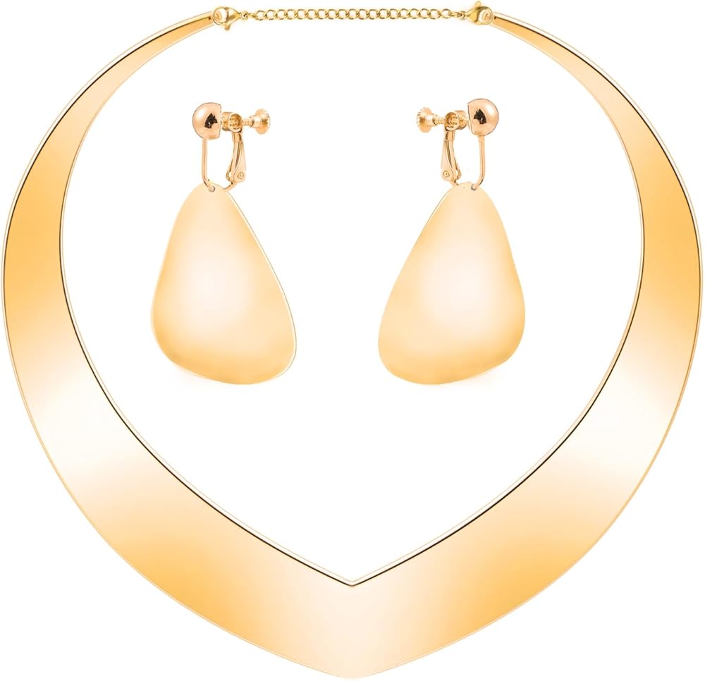 مجموعة أقراط وقلادة ذهبية غير مثقوبة، مشبك على الأقراط ذات الياقة المريلة وقلادة بسيطة مجوهرات تتدلى أقراط كبيرة على شكل دمعة لإكسسوارات الأميرة ياسمين للنساء