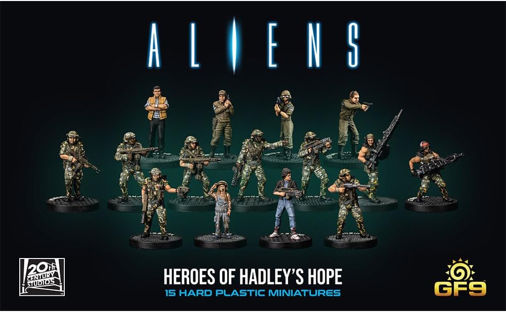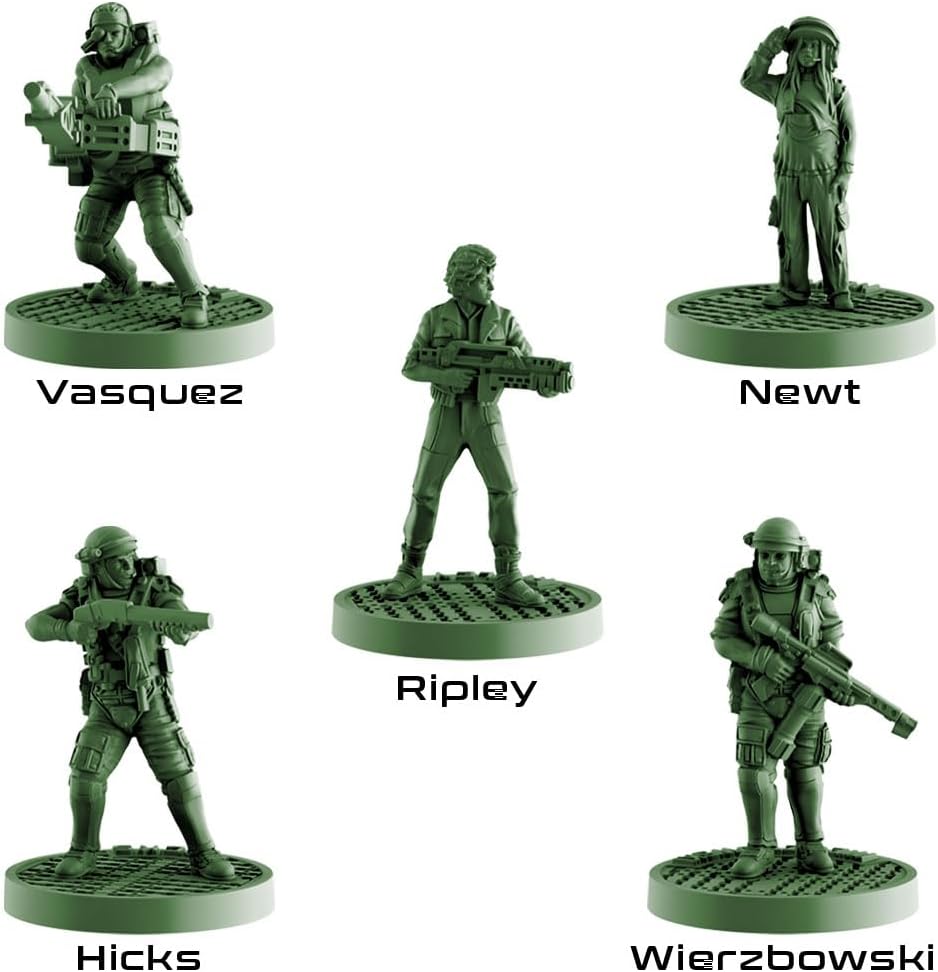 - مصغرات من البلاستيك الصلب عالي الجودة بمقياس 30 مم، تمثل الشخصيات الأيقونية من فيلم Aliens لعام 1986
