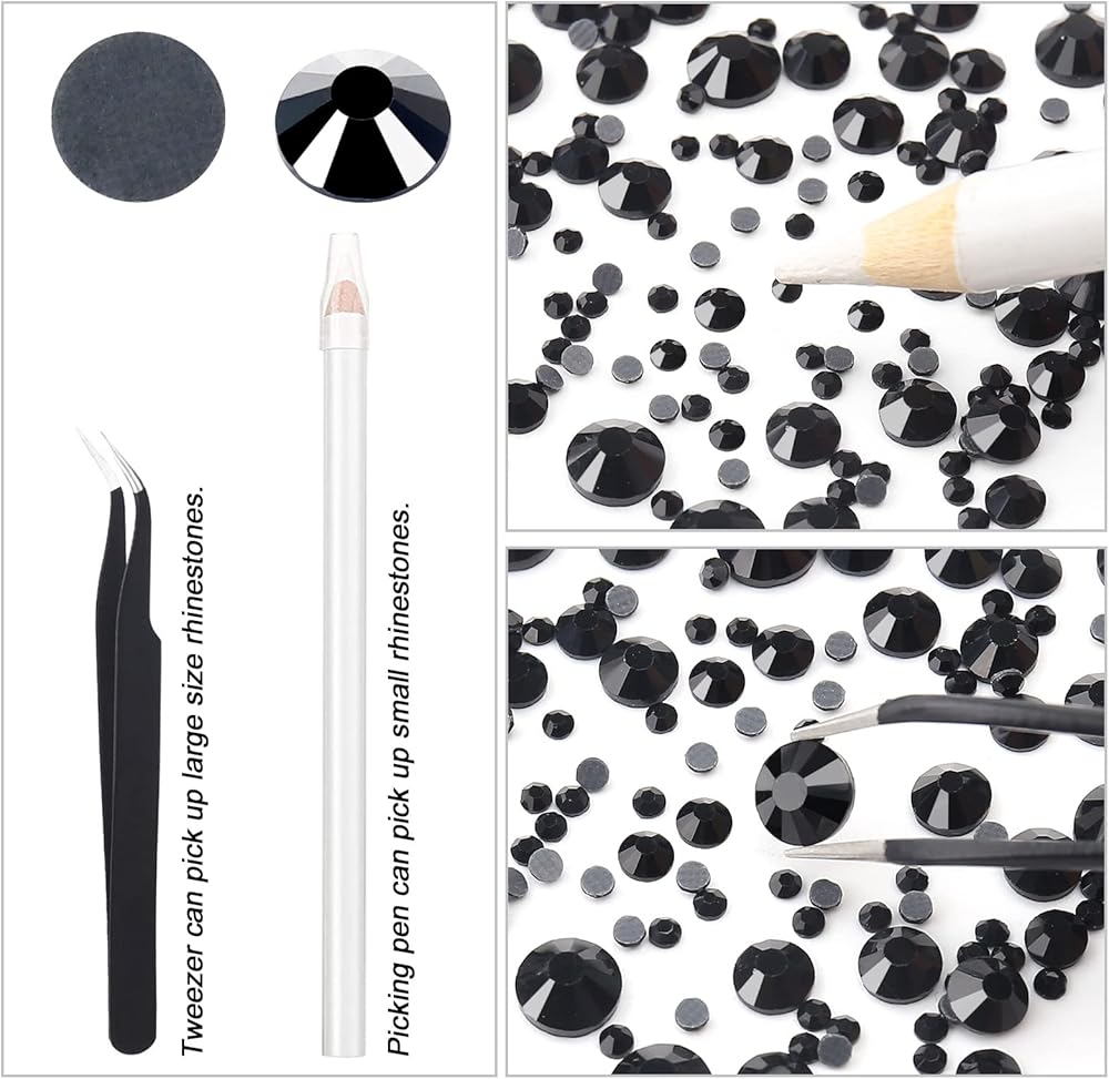اللون والمواد: أسود. مكواة Aurehen على أحجار الراين المسطحة عبارة عن بلورات زجاجية عالية الجودة توفر تألقًا وانكسارًا شديدًا.