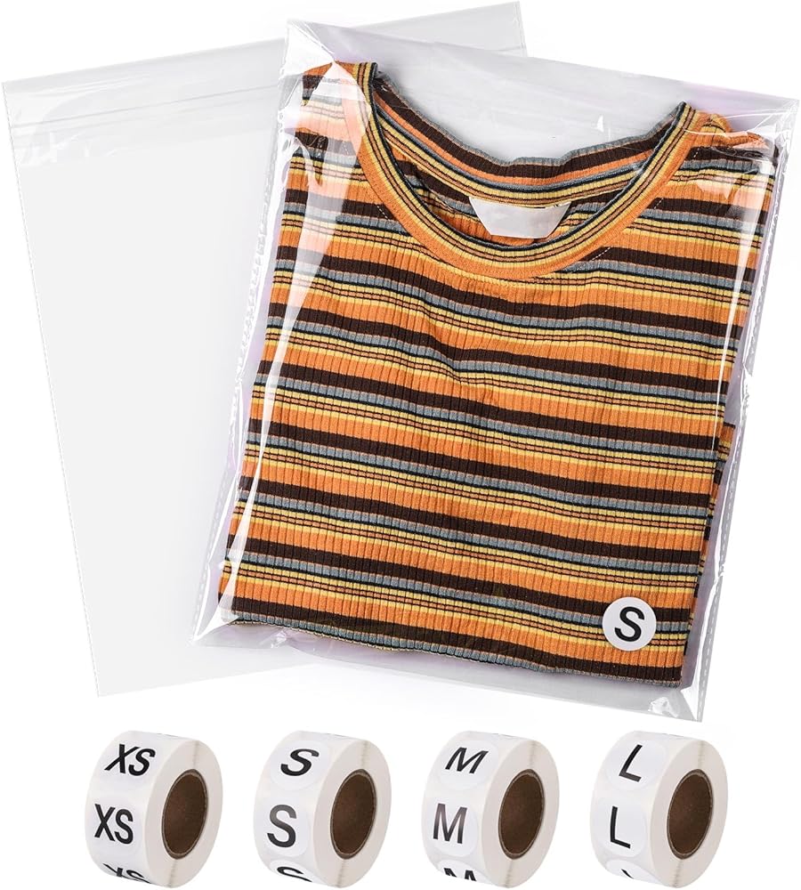 يتم لصق ملصقات مقاس الملابس جيدًا على أكياس التغليف الشفافة. يتيح لك ذلك التعرف بسرعة على حجم الملابس دون إضاعة الوقت في البحث بين الحقائب.