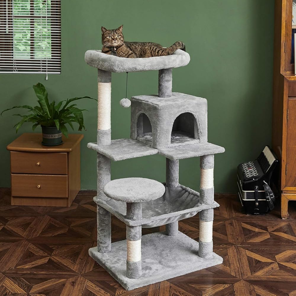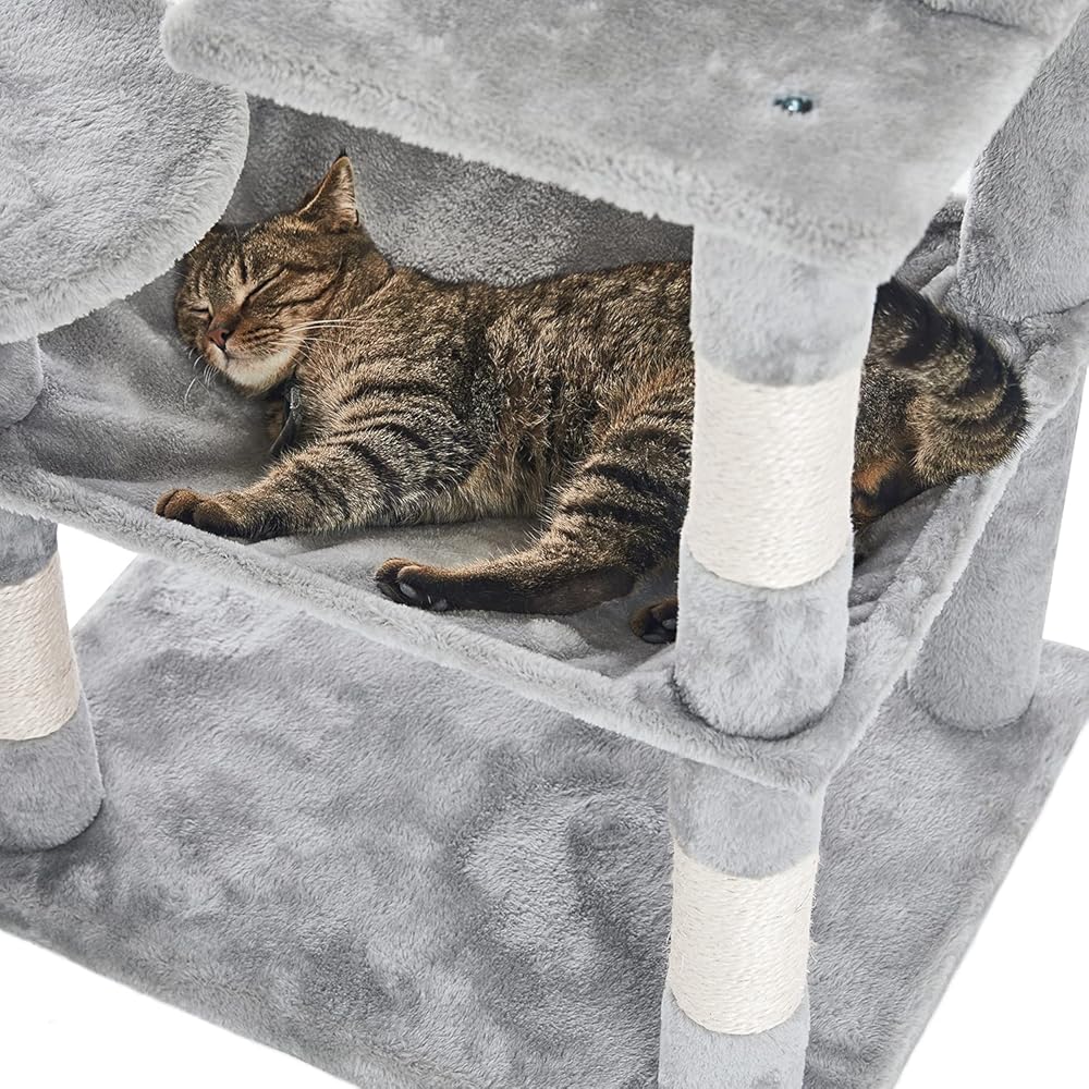 سهلة التركيب: تأتي شجرة القطط مع تعليمات وأدوات تركيب مفصلة، مما يتيح لك إعدادها بسرعة ودون عناء، مما يوفر لقطتك ملعبًا سعيدًا.