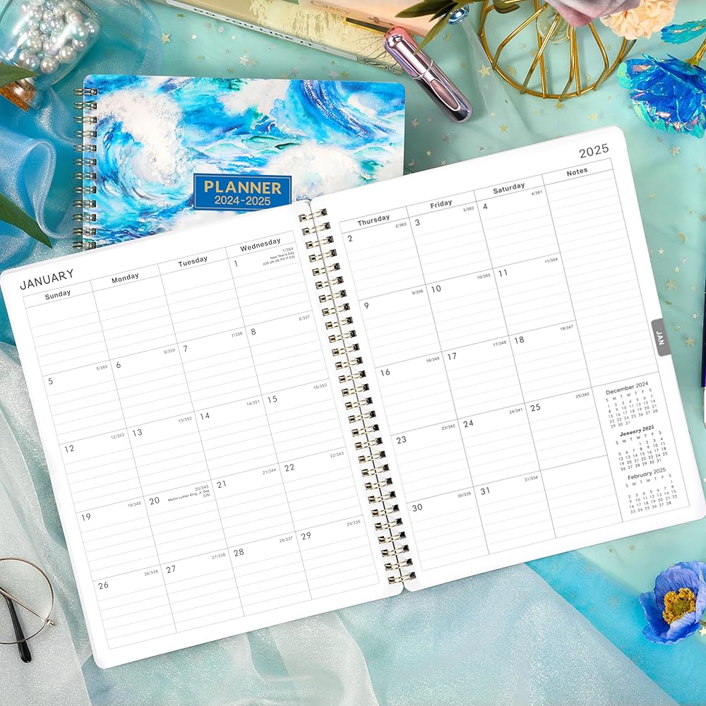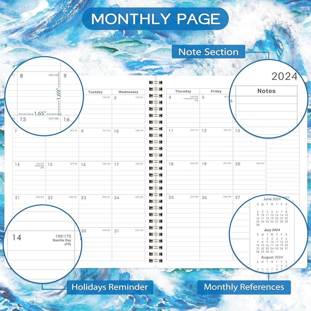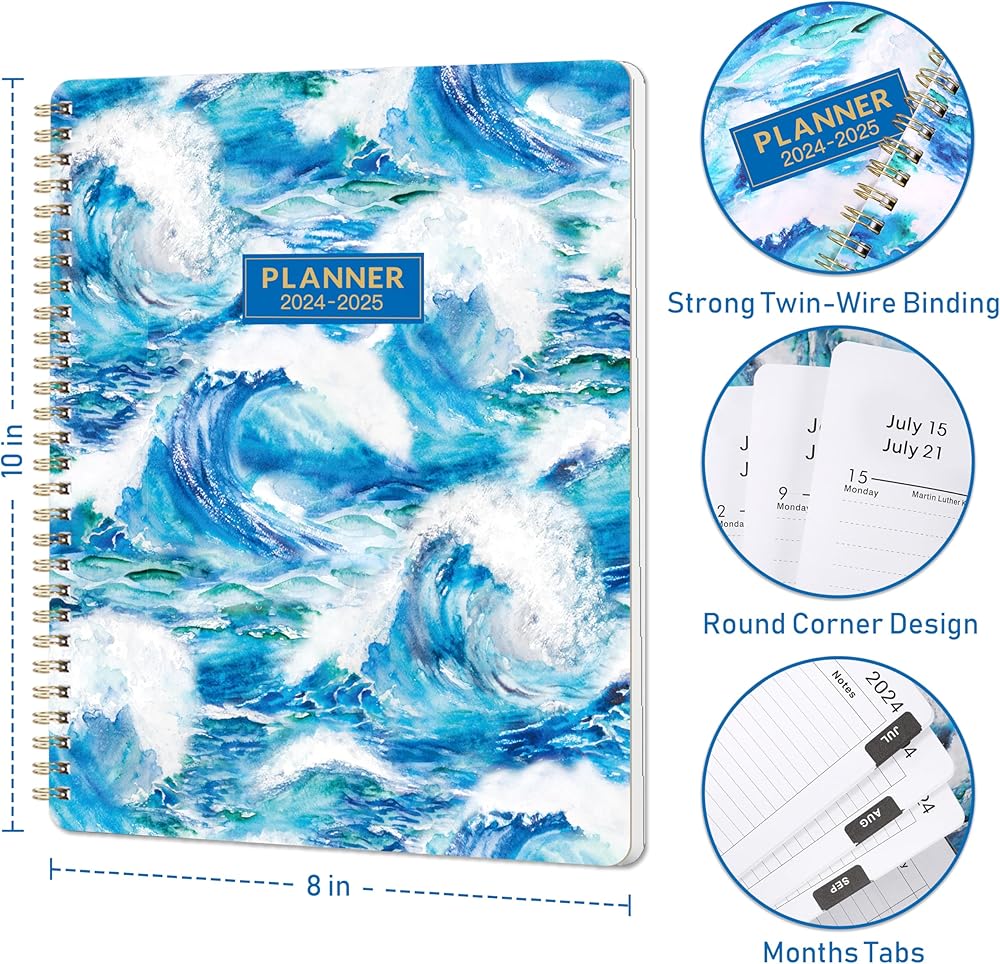 • 🌊 مخطط 2024-2025 - يوليو 2024 - يونيو 2025، يغطي مخطط التقويم 2024-2025 التخطيط والتنظيم على مدار العام. يوفر المخطط مقاس 8 × 10 بوصة مساحة كبيرة لكتابة ملاحظاتك وقوائم المهام.