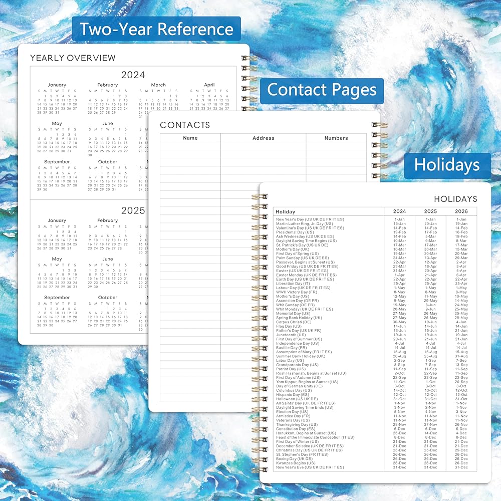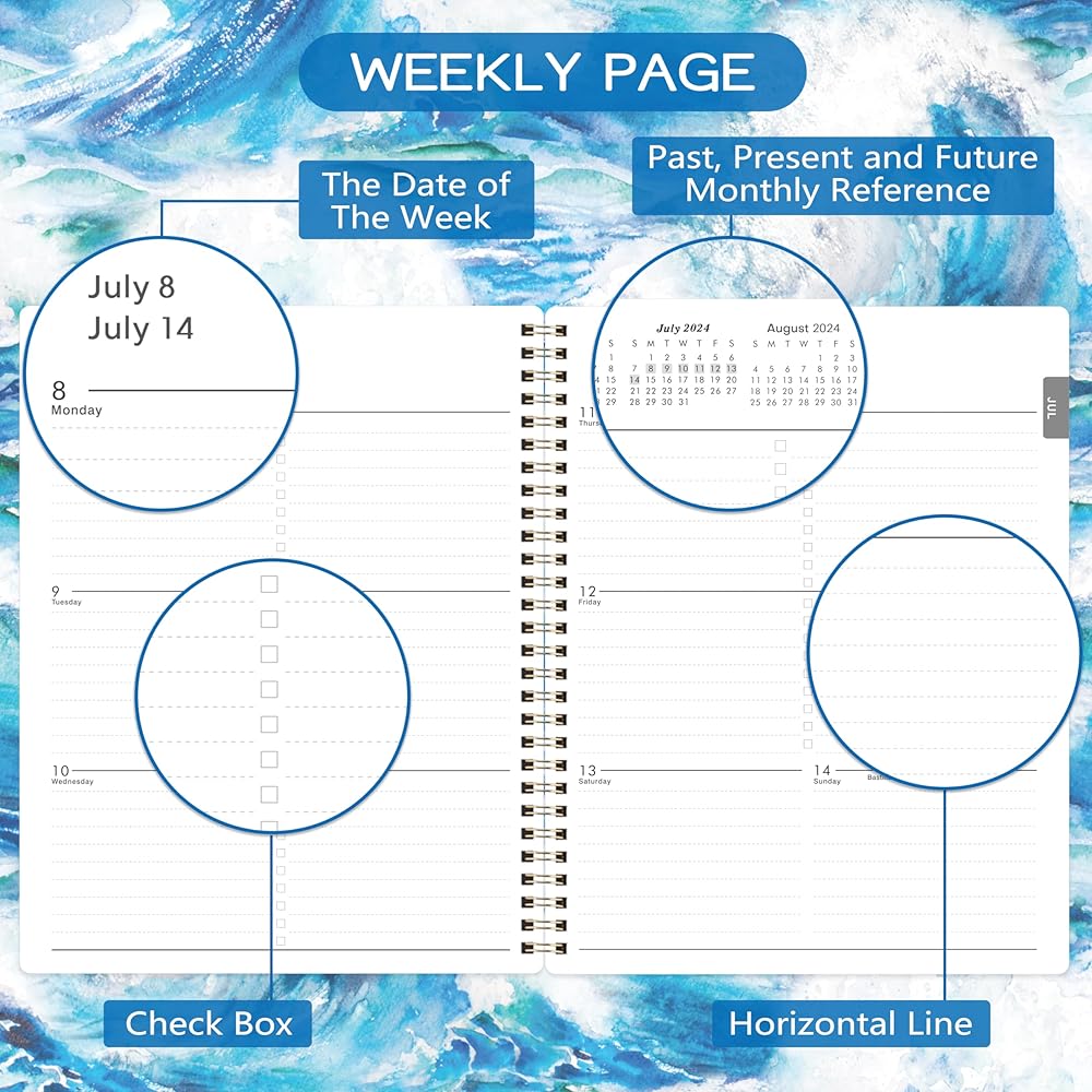 • 🌊 التصميم والخدمة - مع غطاء البحر الأزرق والأمواج المتموجة، هذا المخطط الأسبوعي والشهري 2024-2025 سيجعل حياتك أكثر حيوية وحيوية وتنظيمًا. إذا كانت لديك أي أسئلة، فسنكون هنا دائمًا لمساعدتك!