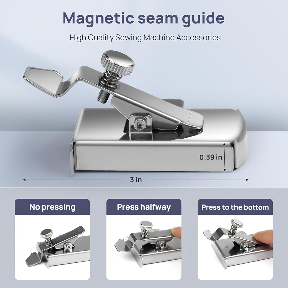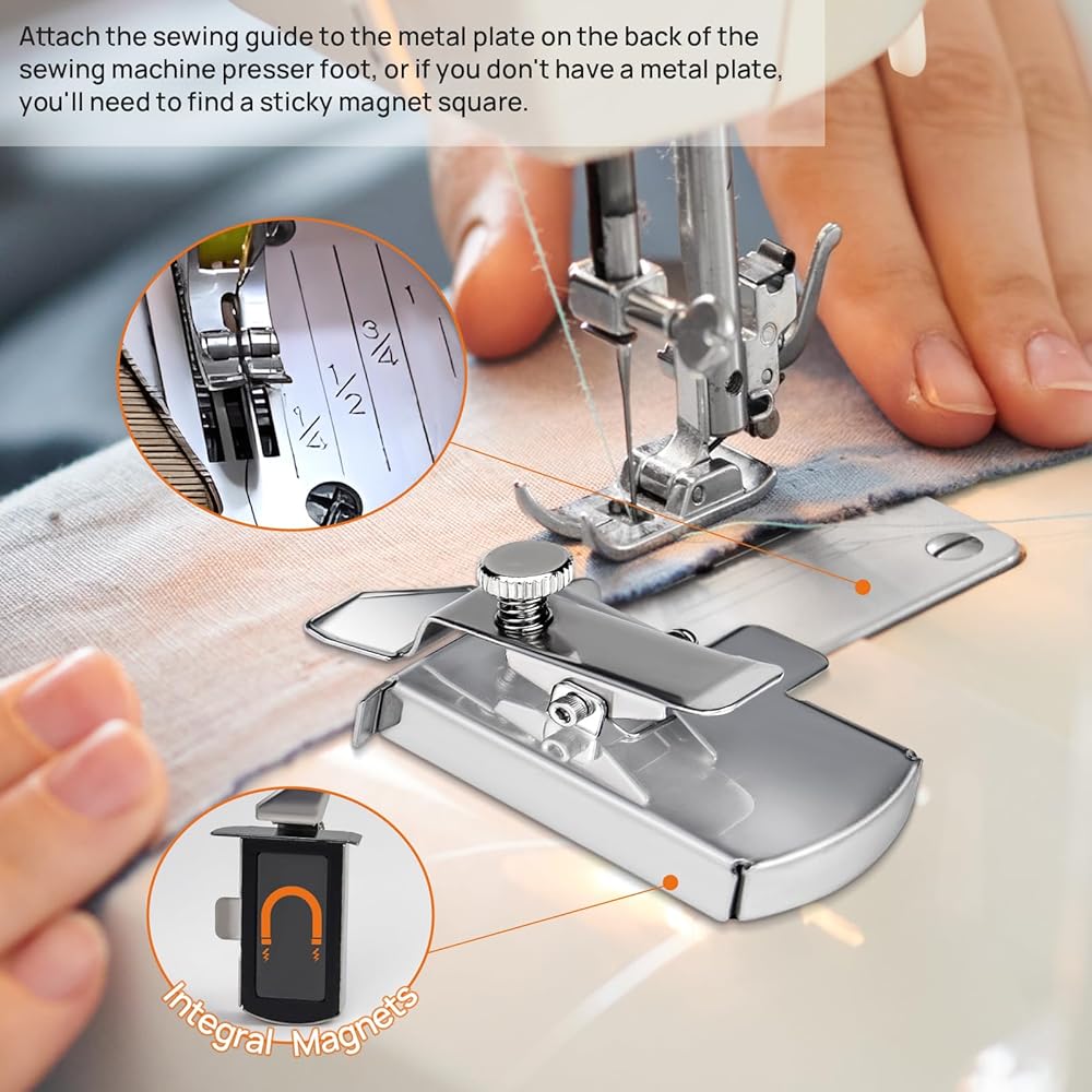 【المواد】دليل الدرزة المغناطيسية مصنوع من الفولاذ المقاوم للصدأ، أملس وقوي، لن يعلق القماش، مع 4 بكرات، إنه مساعد جيد لأعمال الخياطة.