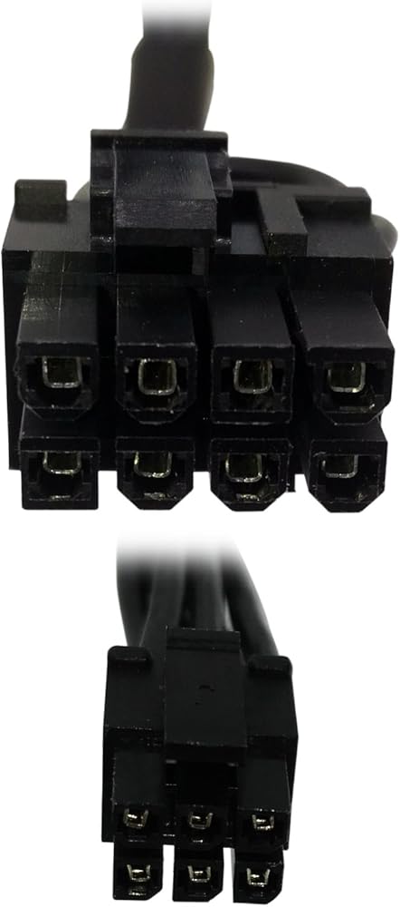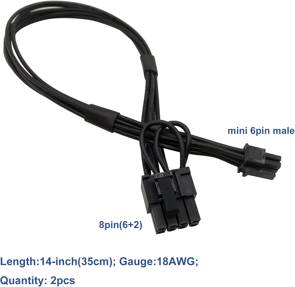 『Mini 6P - قياسي 8P(6+2)』 طرف ذكر صغير ذو 6 دبابيس للتوصيل باللوحة الأم Mac (ملاحظة: النهاية صغيرة 6 دبابيس، وليس حجم 6 دبابيس قياسي.)، معيار 8 دبابيس (6+2) ذكر طرف للتوصيل ببطاقة رسومات الفيديو (يمكن استخدام طرف 8 سنون (6+2) كطرف 6 سنون أو 8 سنون عن طريق تشغيل/إيقاف الدبوسين)؛