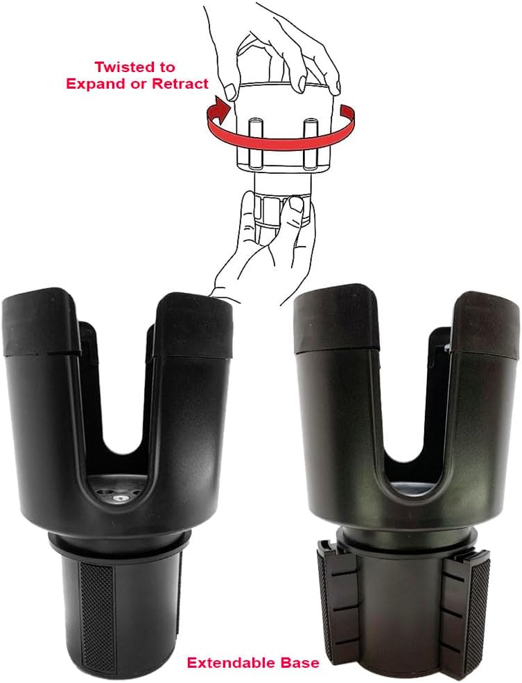 قابلة للتعديل بالكامل لملاءمة مخصصة: قاعدة فريدة قابلة للتعديل تسمح لحامل الأكواب بالتمدد من 2.5 إلى 3.8 بوصة في القطر لتناسب معظم حاملات أكواب السيارات وحمل الزجاجات بأحجام تتراوح من 3.4 إلى 4.4 بوصة، مثالية لـ Yeti 20/26/30oz ، نالجين 32/38 أونصة، وقوارير مائية كبيرة 32/40 أونصة.