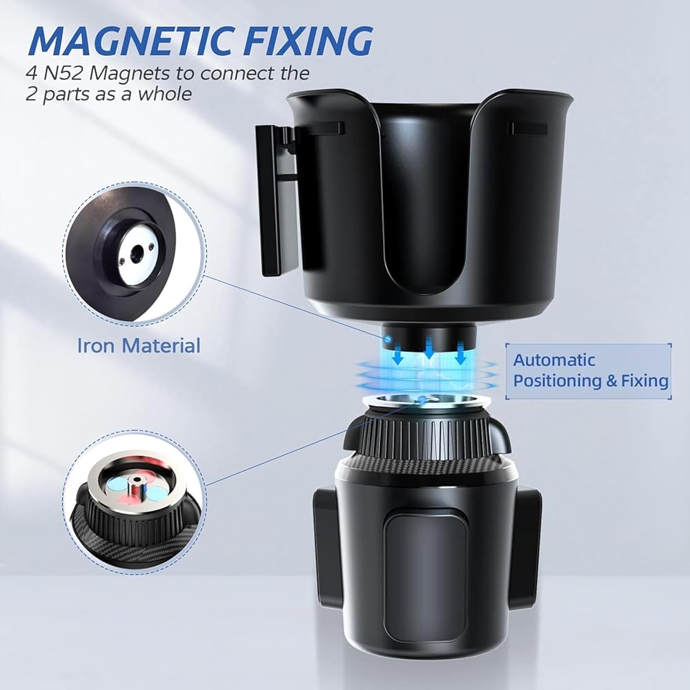 سريع التركيب: يستخدم تصميم محول حامل الأكواب المغناطيسي المبتكر 4 مغناطيسات N45 قوية لتوصيل الأجزاء العلوية والسفلية ككل، وتحديد المواقع والتثبيت تلقائيًا. بالمقارنة مع حاملات الأكواب الأخرى التي تتطلب يدين للشد، فإن تركيب وتفكيك منتجاتنا أبسط وأسرع.