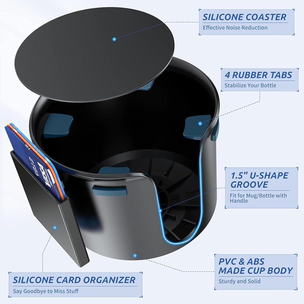 قاعدة حامل أكواب السيارة الإضافية: قم بتوصيل قاعدة مطاطية داخل الجزء السفلي من الحامل لسيارتك لتجنب خدش جسم زجاجة الماء/الكوب/الكوب.