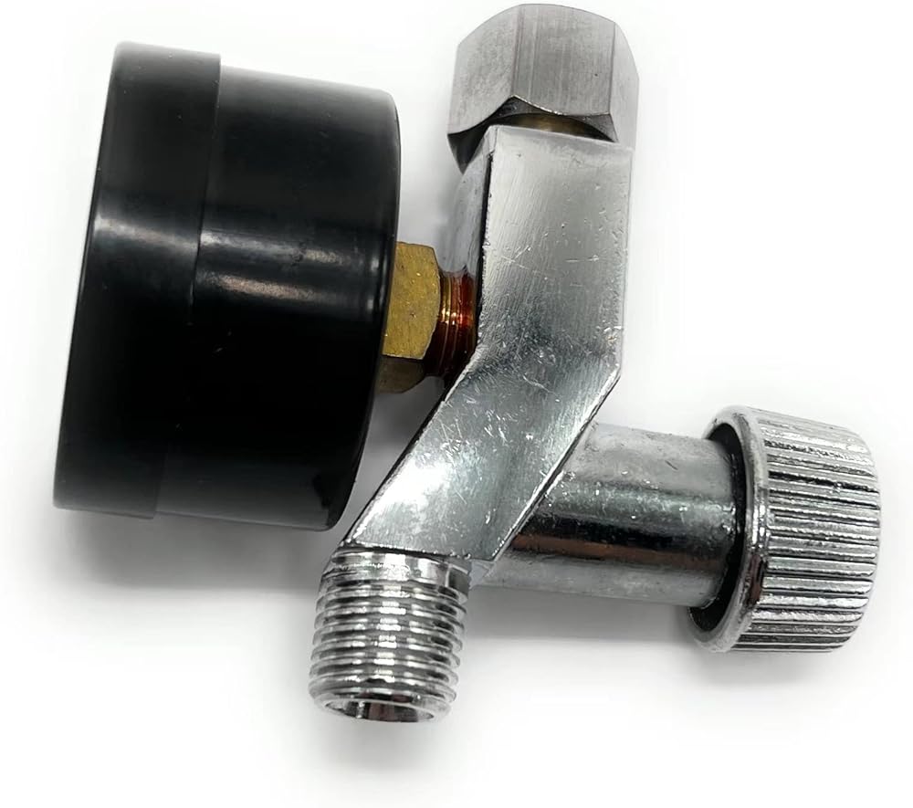 • يحتوي منظم الضغط على منفذ خيط 1/4-NPT، ويمكنه قياس الضغط من 0 إلى 160 رطل لكل بوصة مربعة ومن 0 إلى 11 بار.