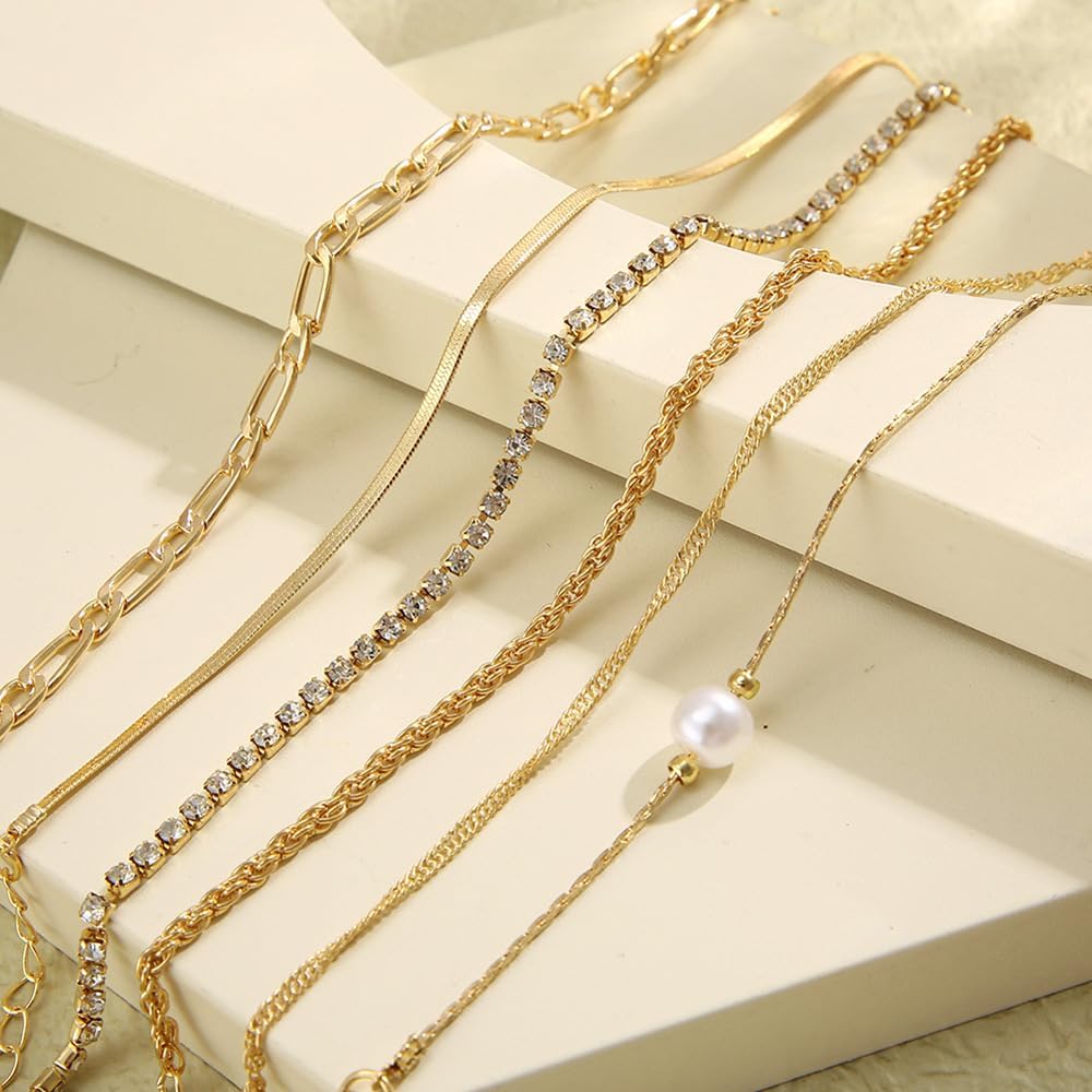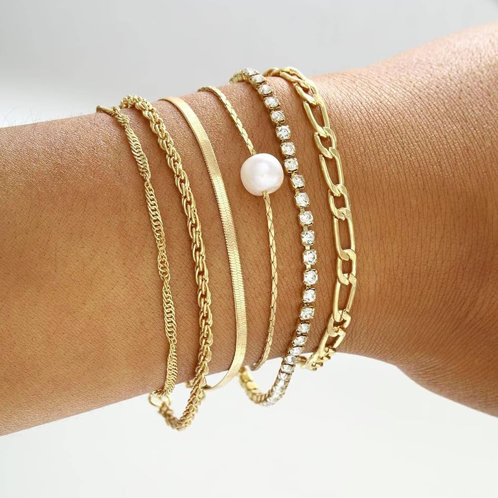 • 【مجموعة أساور من الذهب عيار 14 قيراط】تتضمن مجموعة الأساور الذهبية الأنيقة هذه سلسلة كلاسيكية وأساور لؤلؤ رقيقة، بالإضافة إلى أنماط أخرى. تأتي كل مجموعة مع خمسة أساور، يمكن ارتداؤها بمفردها أو مزجها مع أساور أخرى لمظهر أنيق.