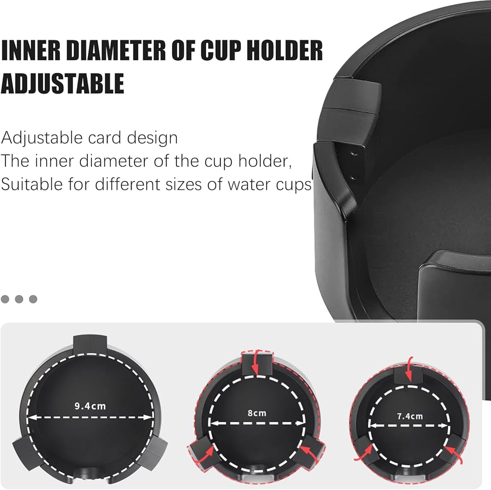 تعديل 360 درجة: مع زر دوران 360 درجة، يمكنك بسهولة ضبط حامل الكوب على الزاوية المفضلة لديك، مما يوفر لك تجربة شرب مريحة ومريحة. يمكن تعديل القطر الداخلي من 2.9 إلى 3.7 بوصة (7.4 إلى 9.4 سم) ليناسب أحجام الأكواب المختلفة. يمكنك استخدامه لوضع القهوة والعصير والنبيذ والبيرة والكولا.