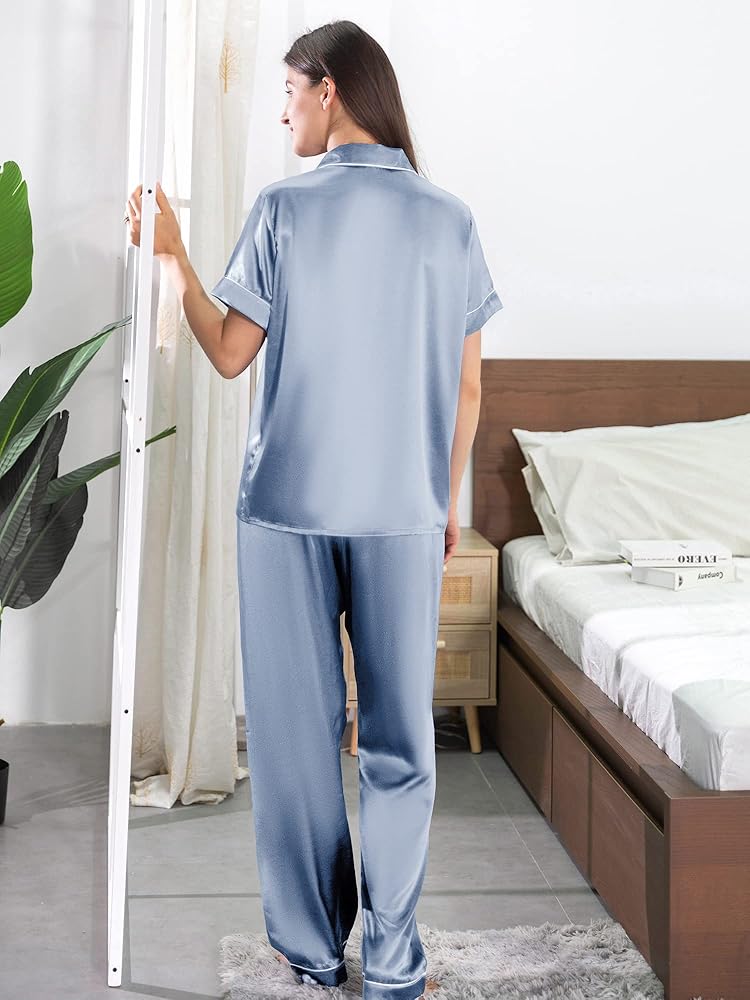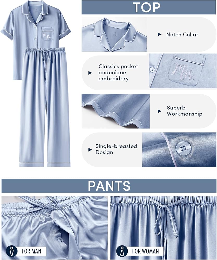 📏【نطاق المقاسات】متوفر في مجموعات بأحجام مختلفة: S، M، L للبيجامات الحريرية النسائية؛ M، L، XL بيجامة الساتان للرجال. تصميمات مختلطة الحجم لمجموعة البيجامات ذات الأكمام القصيرة تناسب جميع الأزواج. يرجى التحقق من صورة جدول المقاسات قبل تقديم الطلب.