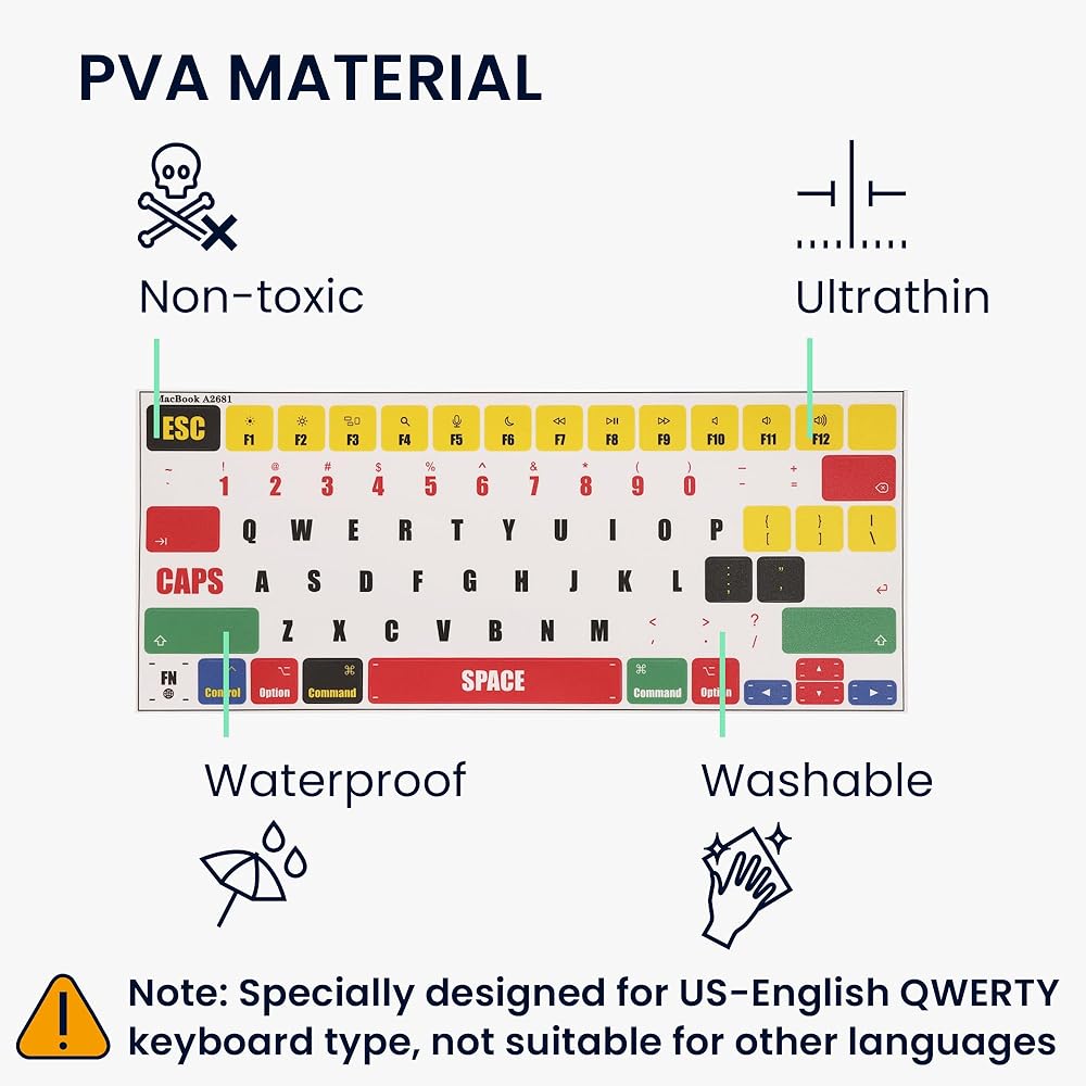 ملصق لوحة مفاتيح الكمبيوتر المحمول ديكو QWERTY (الولايات المتحدة) لجهاز Apple MacBook Air 13.6 M2 (A2681) طراز Touch ID - متعدد الألوان
