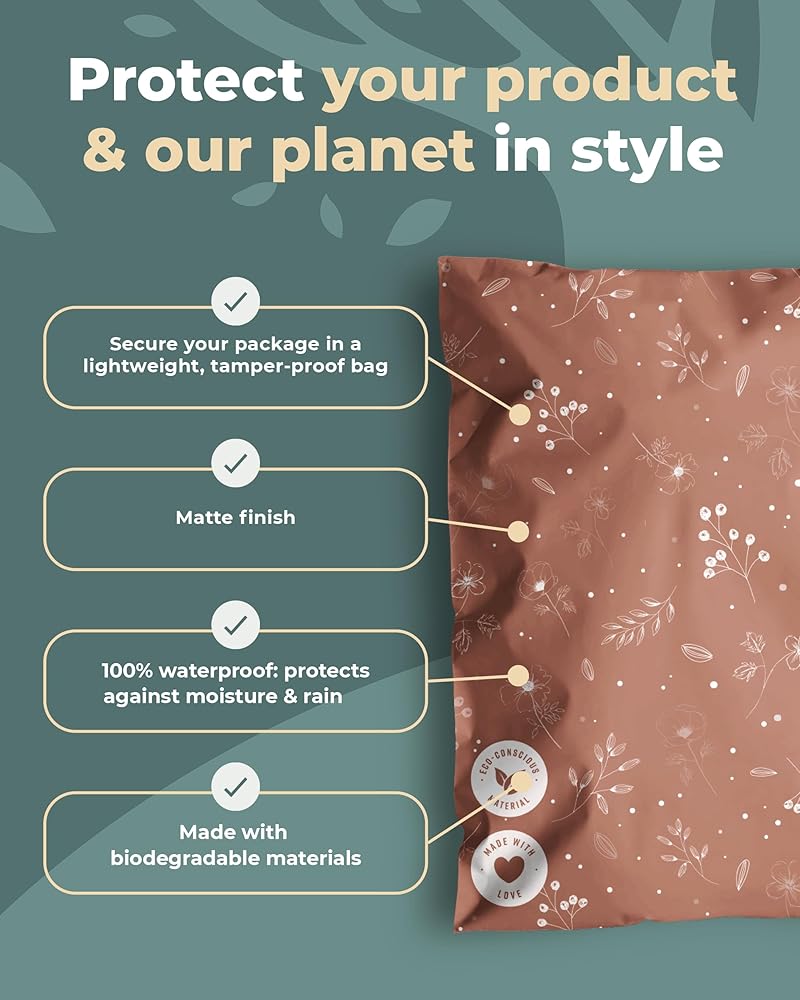 حافظ على سلامة منتجاتك 🛡️ حقائب الشحن هذه مصنوعة من مواد عالية الجودة وهي مقاومة للماء والتمزق والثقب. منتجاتك في أيدٍ أمينة مع رسائل الشحن هذه.