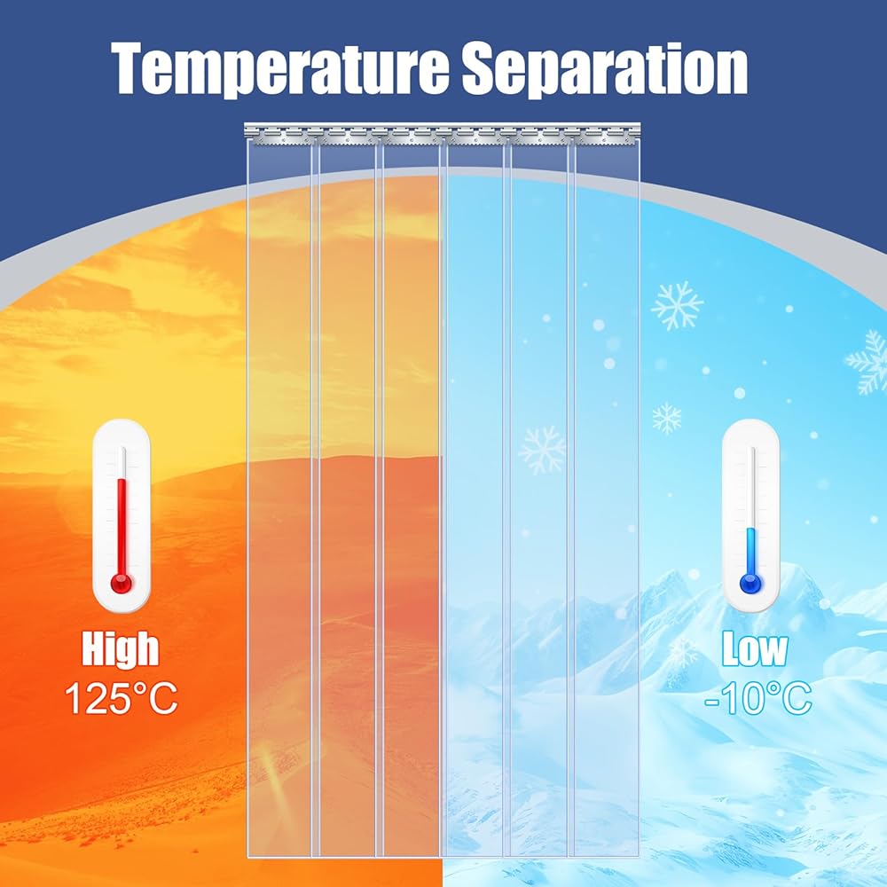 عملي وعملي: شريط الستارة PVC الشفاف هذا يعني تحسين كفاءة الطاقة في المبنى الخاص بك؛ تعمل على منع الحرارة من الانتقال إلى مساحتك خلال الصيف وتحجب الهواء البارد في الشتاء، مما يحافظ على درجة الحرارة المثالية؛ لا يضيف هذا التنظيم الراحة إلى بيئتك فحسب، بل يساهم أيضًا في تقليل فقدان الطاقة
