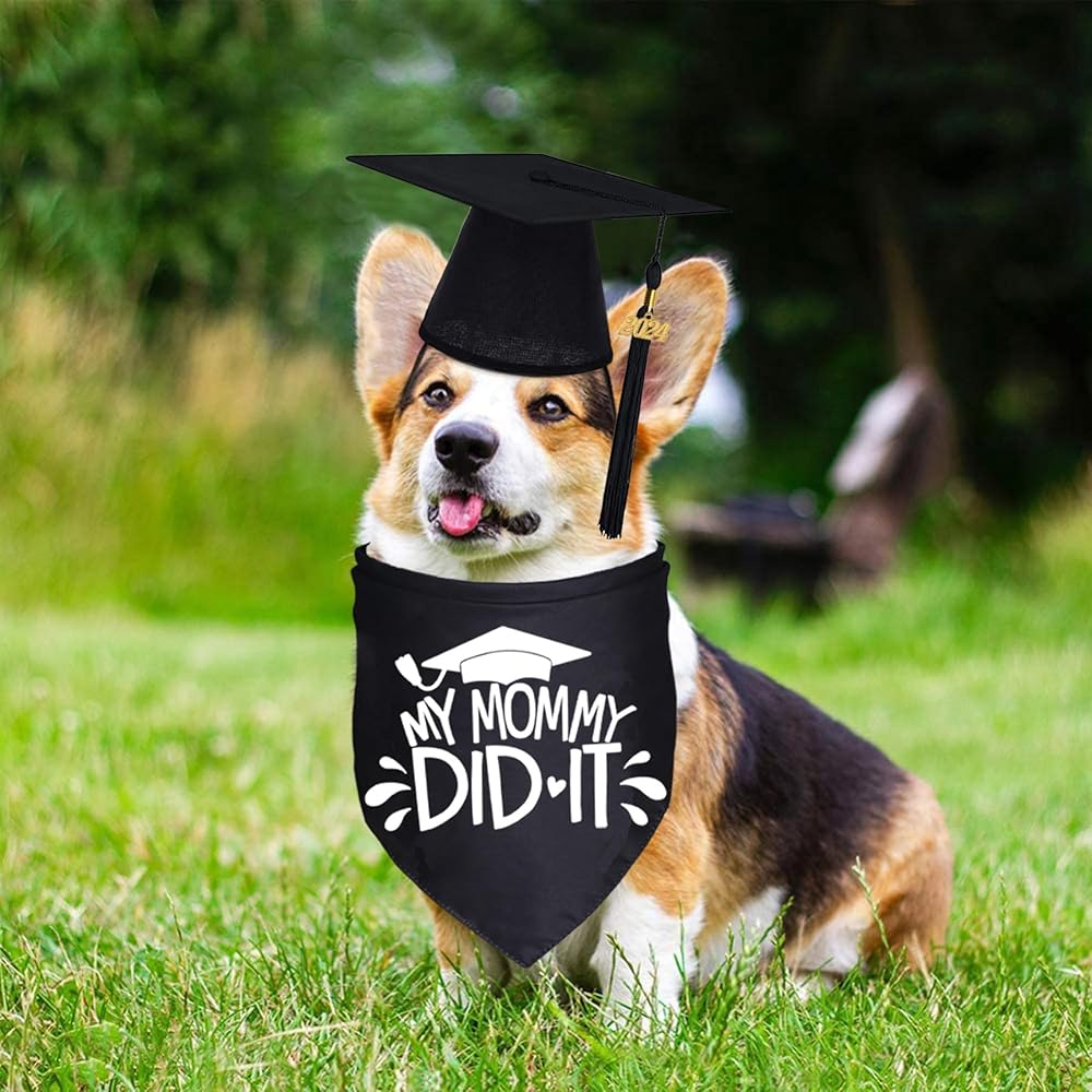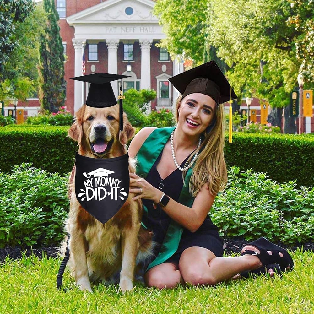 هدية تخرج رائعة: يمكن استخدام منديل تخرج الكلاب عالي الجودة وقبعة تخرج الكلاب لحيوانك الأليف في وقت التخرج. تعتبر باندانا التخرج وقبعة تخرج الكلاب هدية تخرج رائعة لحيوانك الأليف ذو الفراء. دع هذا التخرج يكون أكثر لحظة لا تنسى في الحياة.