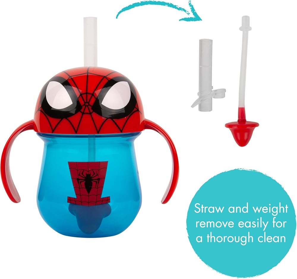 الشرب من أي زاوية: يتميز كوب الأطفال الموزون هذا بماصة من السيليكون تسمح لطفلك بالشرب من أي زاوية، مما يضمن عدم ترك أي قطرة خلفه.