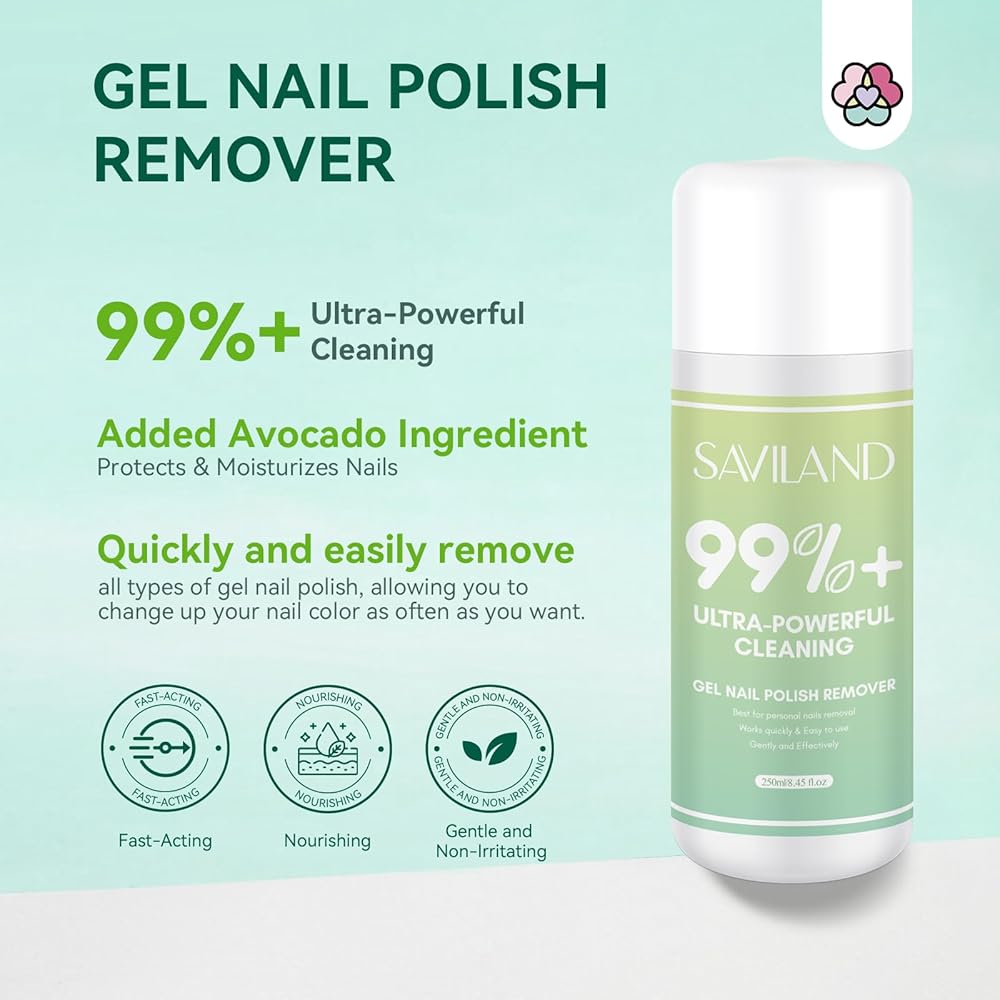 ❤【ALL-IN-ONE GEL NAIL POLISH REMOVER KIT】Saviland gel nail polish remover kit contains everything you need to soak, dissolve, and remove gel polish, including 250ml gel nail polish remover, 10pcs nail clips, 500pcs nail remover cotton pads and some other nail tools. Use our nail polish remover tool kit, which can help you remove gel polish easily.