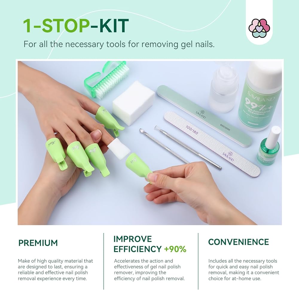 ❤【EASY TO USE】Saviland gel polish remover kit is convenient and easy to use. Only 5 steps - file, soak, clip, scratch, polish, remove gel nail polish easily without destroying your nails. Suitable for nail lovers, professionals and beginners.