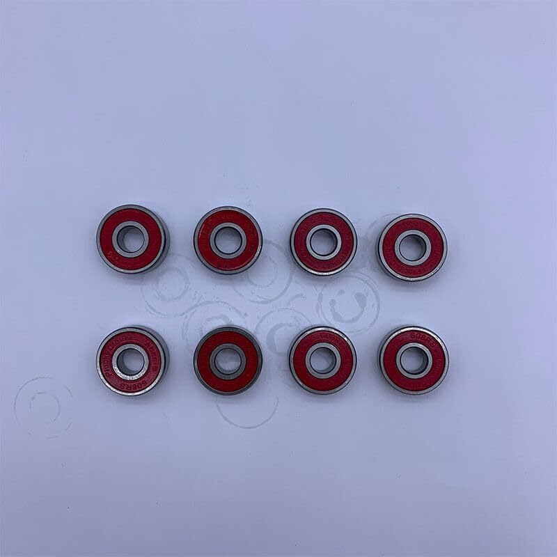 إنتاج الحجم - يبلغ القطر الداخلي لمحامل لوح التزلج حوالي 0.32 بوصة/8 مم، والقطر الخارجي حوالي 0.87 بوصة/22 مم، والعرض حوالي 0.28 بوصة/7 مم.