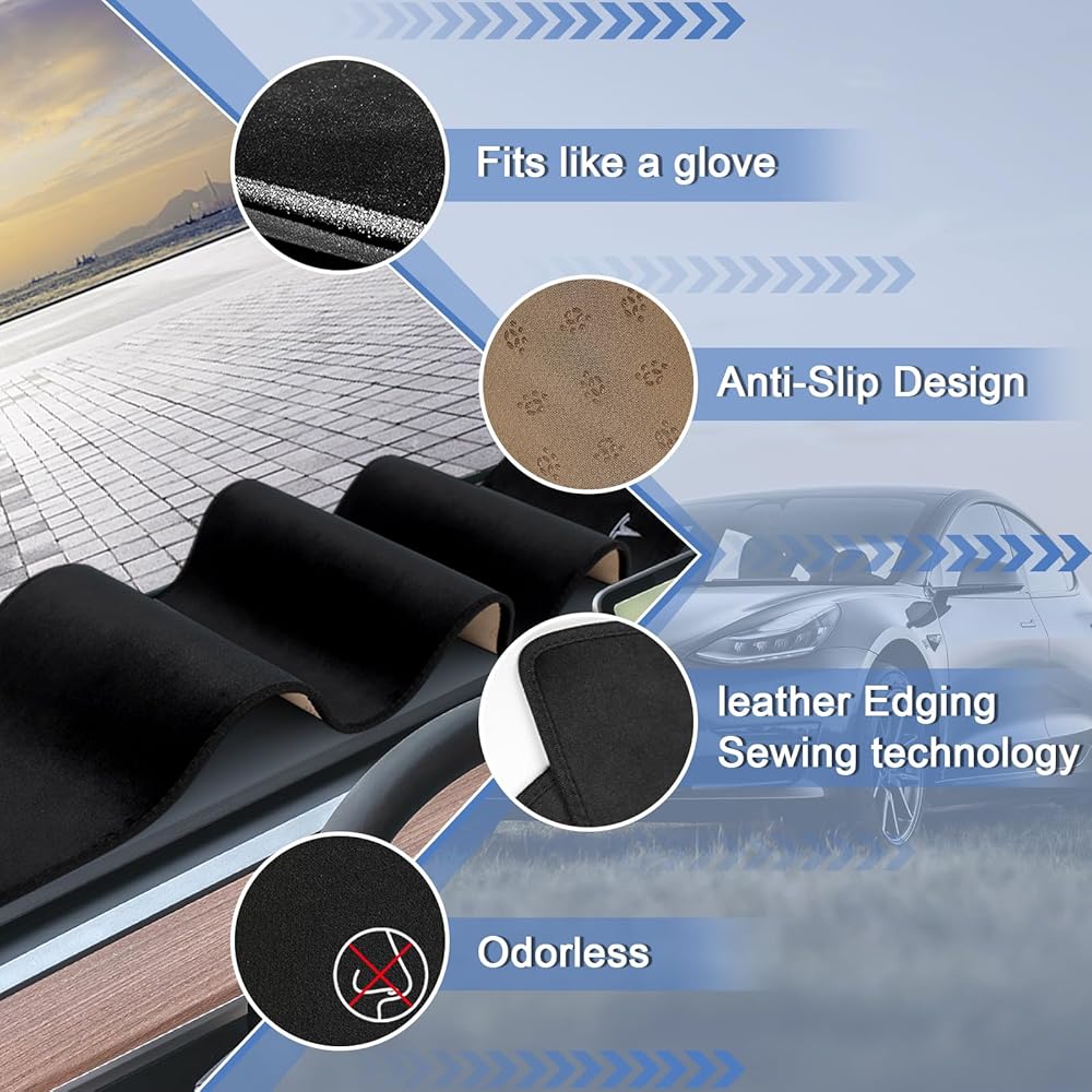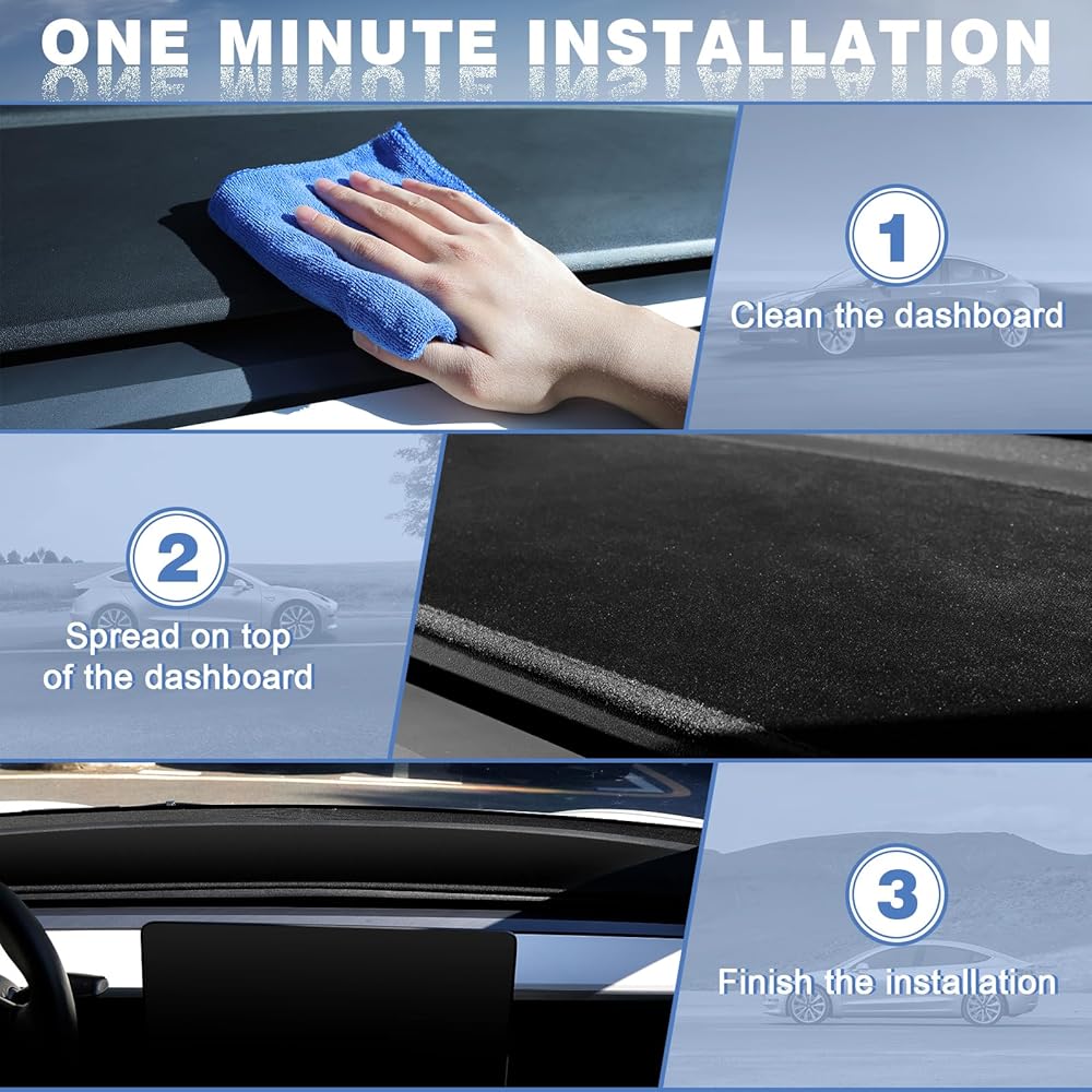 【تصميم مخصص للطراز Y موديل 3】سجادة أجهزة القياس XINTUO مناسبة لموديل Tesla Y 2023-2020، وتناسب أيضًا موديل 2017-2023 3. ببساطة ضع السجادة أعلى لوحة القيادة.