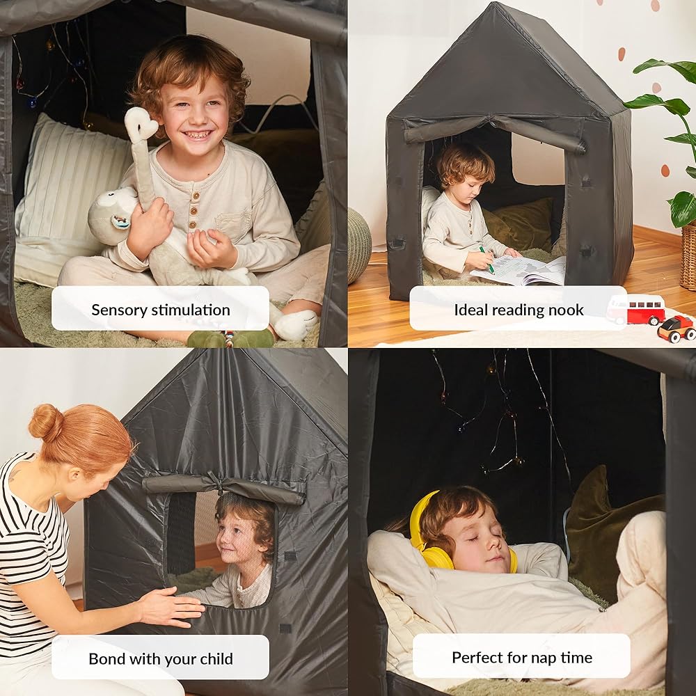 【مساحة هادئة لطفلك】 - قم بإنشاء زاوية حسية مريحة ومهدئة لطفلك حيث يمكنه أخذ استراحة من العالم المزدحم واللعب بالسرعة التي تناسبه. تعتبر هذه الخيمة الهادئة مثالية للأطفال ذوي الاحتياجات الخاصة الذين يتم تحفيزهم بسهولة ويحتاجون إلى بيئة آمنة للاسترخاء في المنزل أو في المدرسة.