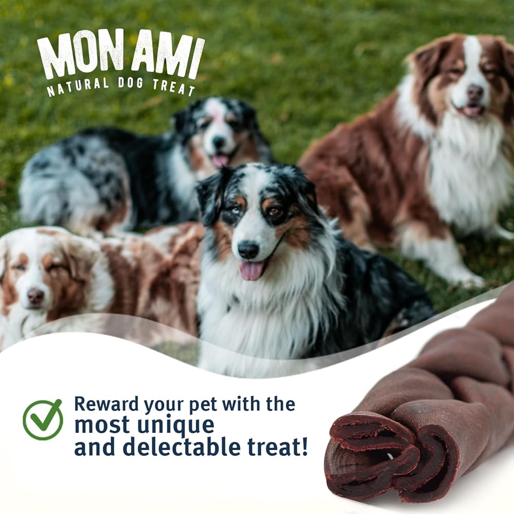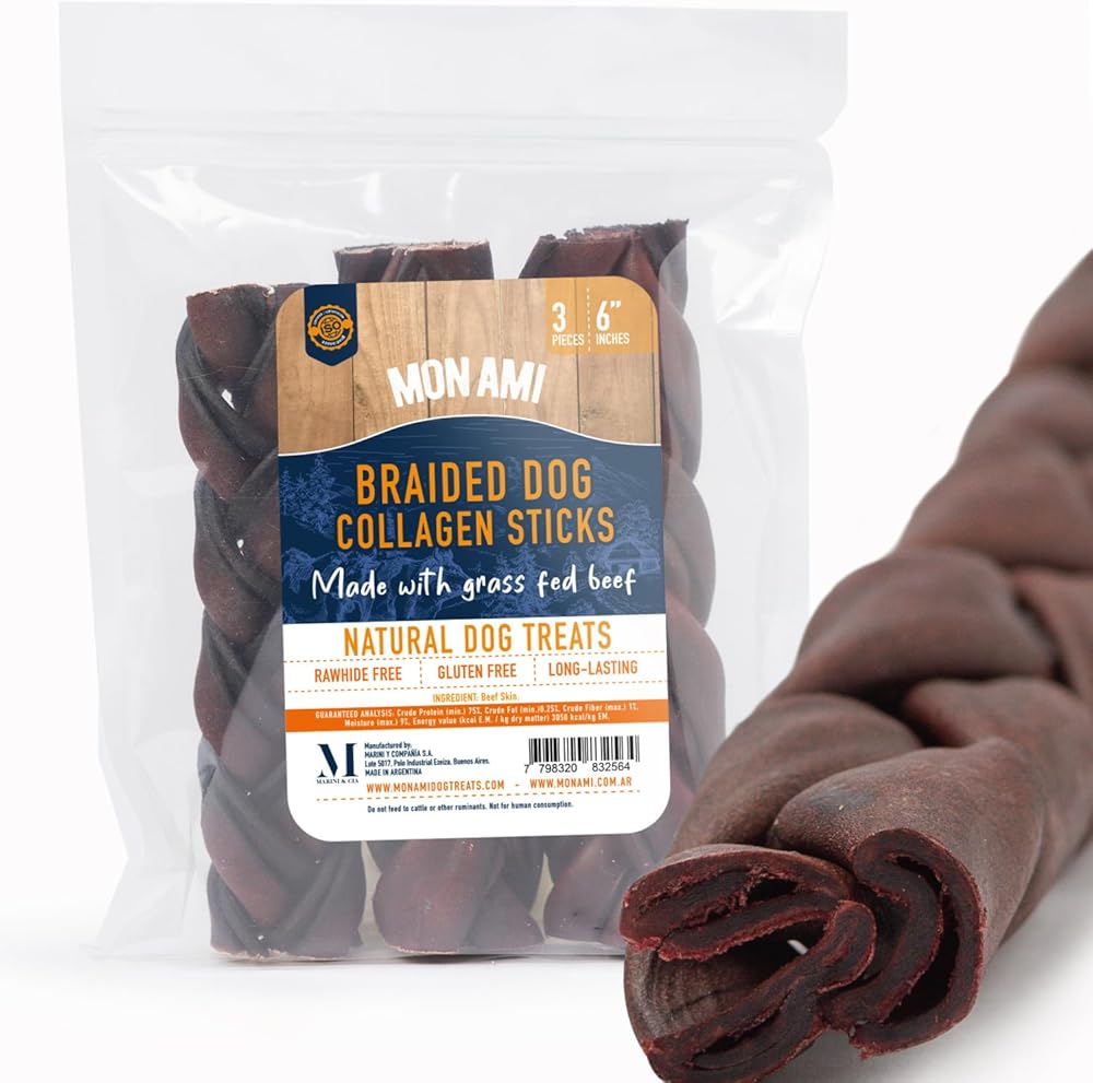 مذاق رائع ويساعد على تنظيف أسنان أفضل أصدقائك - تعتبر مضغ أسنان الكلاب من أهم الأشياء الجيدة والممتعة التي يستحقها حيوانك الأليف. عصا المضغ المصنوعة من الكولاجين المضفرة الخاصة بنا تختلف عن عصي الكلاب المتشنجة الأخرى لأن علاجات الكولاجين المضفرة للكلاب الكبيرة من Mon Ami قوية وتدوم طويلاً، وتتخلص من البلاك والجير على طول الطريق! انسَ عظام المضغ الأخرى للكلاب، الآن يمكنك أن تمنح أسنان كلبك مذاقًا رائعًا للمضغ الطبيعي الذي سيساعده على البقاء كلبًا صحيًا وسعيدًا.