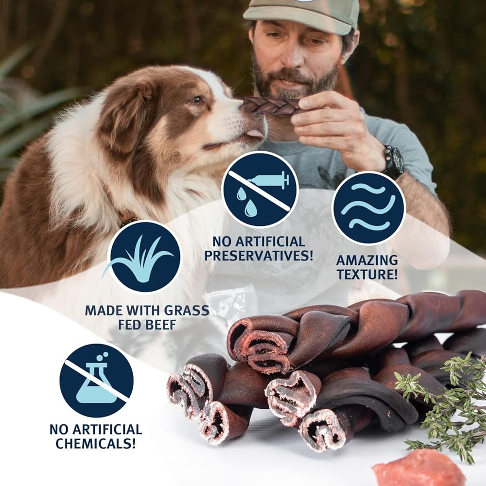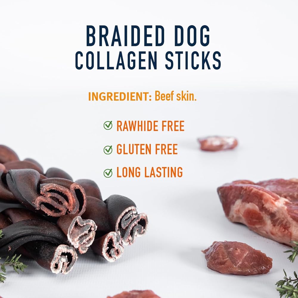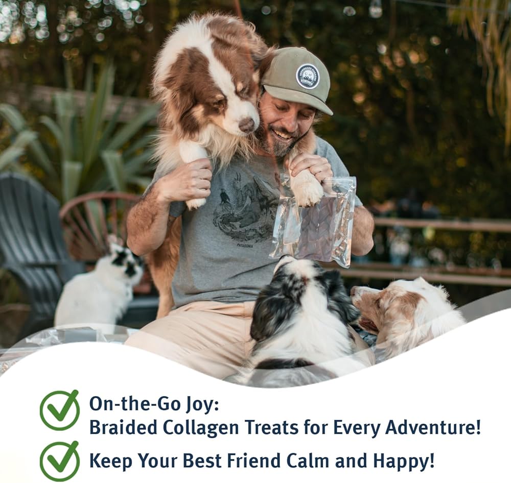 مكافآت الكلاب المهدئة أثناء التنقل - حافظ على استرخاء الجرو الخاص بك أينما كنت تتجول مع مجموعتنا المريحة من مكافآت الكلاب التي يبلغ طولها 6 بوصات! تعتبر عصي الكلاب المضفرة الطبيعية هذه رفيقك المثالي في السفر! قل وداعًا للجلد الخام والمضغ التقليدي؛ توفر أعوادنا الآمنة واللذيذة البديل المثالي. هل تعلم أن العصي المضفرة مشهورة بتهدئة الكلاب القلقة؟ انسَ فرشاة الكلاب أو العصي المقدد القديمة للكلاب ودلل رفيقك بمعاملة الكولاجين المضفرة مع الخضار.
