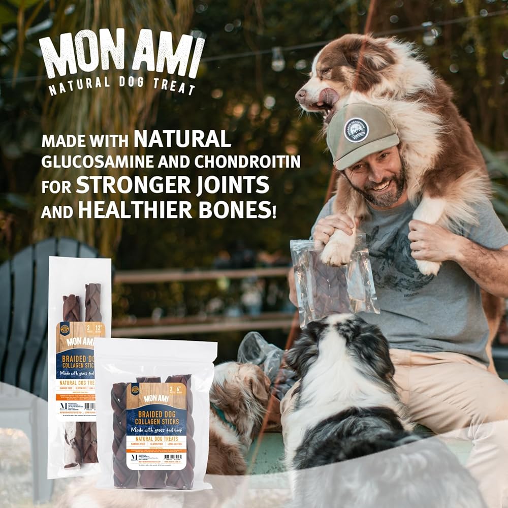 مكافآت الكلاب بالكولاجين من لحم البقر المضفر من مون آمي مع الخضار (6 بوصات) - أعواد الكولاجين للكلاب المصنوعة من لحوم البقر التي تتغذى على العشب مع الجلوكوزامين والكوندرويتين - مكافآت طبيعية للكلاب