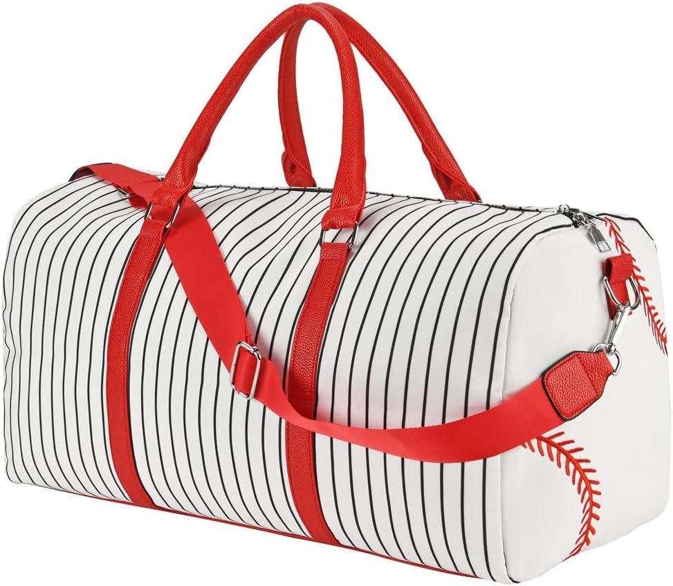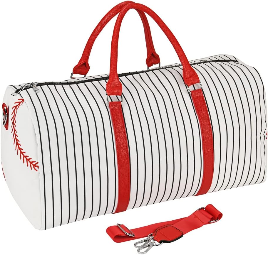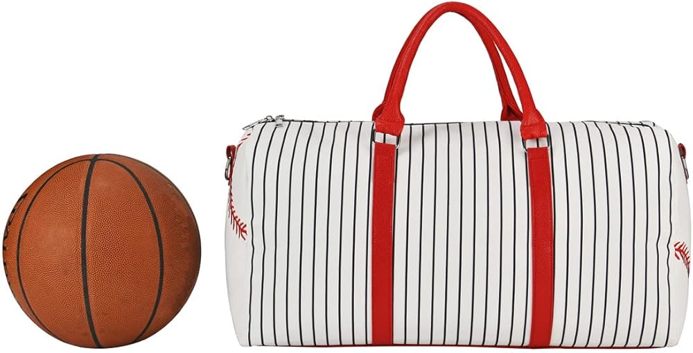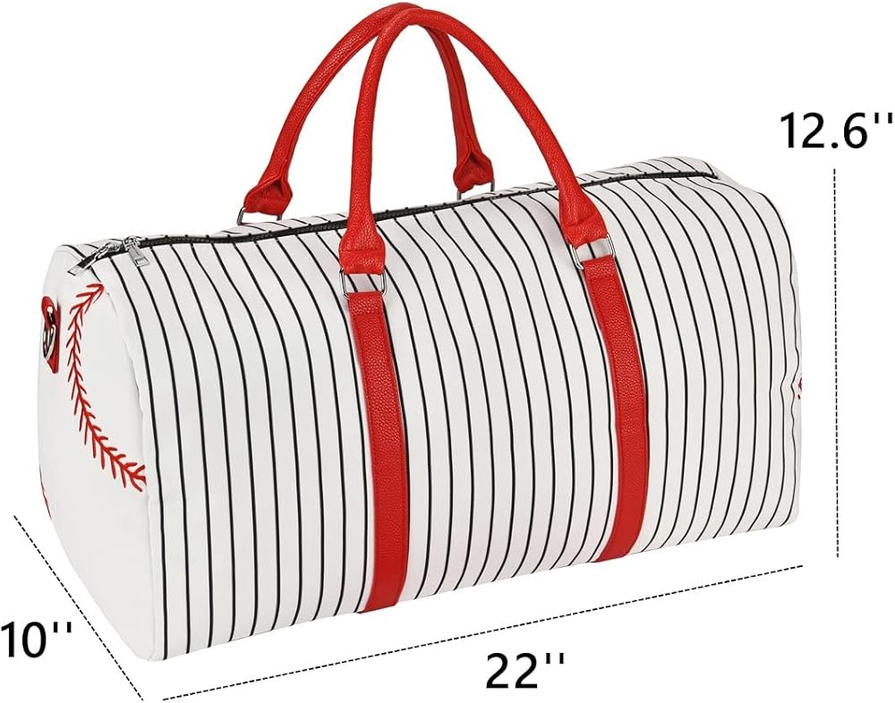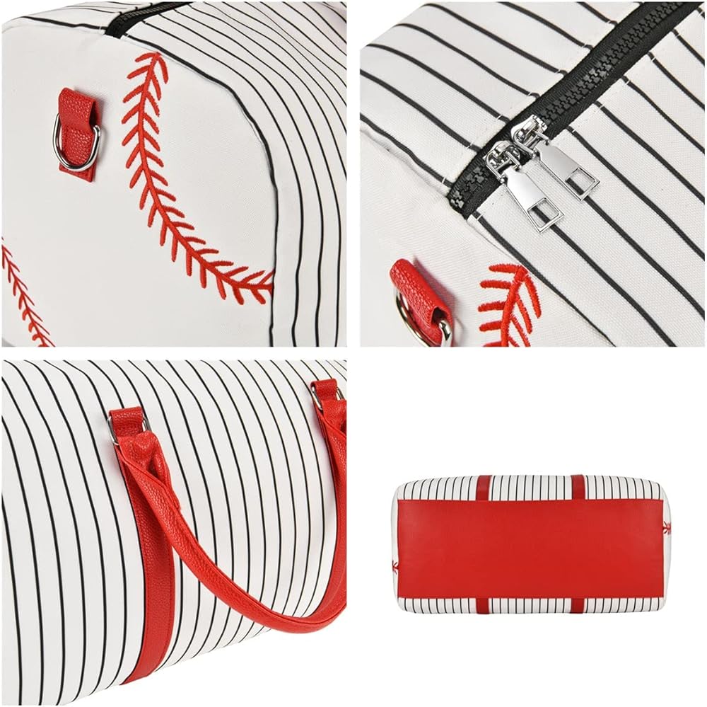 حقيبة حمل بيسبول مطرزة - حقيبة عطلة نهاية الأسبوع للنساء مقاس 22 بوصة حقيبة سفر كبيرة لعطلة نهاية الأسبوع من القماش وحقائب حمل ليلية وحقيبة رياضية (Baseball-A)