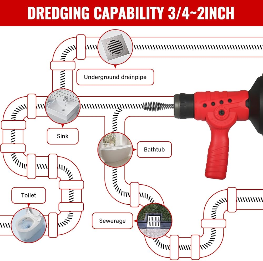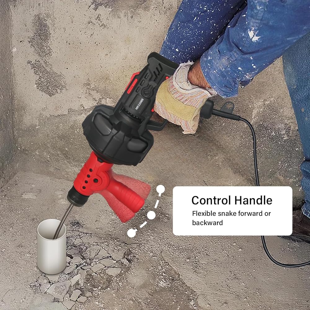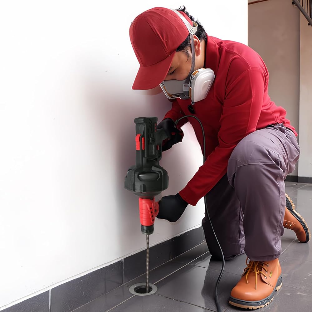 • تم تجهيز مثقاب الصرف الكهربائي بمقبض تحكم يمكنه التحكم بسهولة في حركة الكابل للأمام والخلف. يوفر مثقاب الصرف سرعة عالية جدًا من 0 إلى 560 دورة في الدقيقة، مما يجعل من السهل إزالة الانسداد في أنابيب المرحاض والحوض.