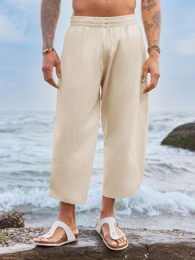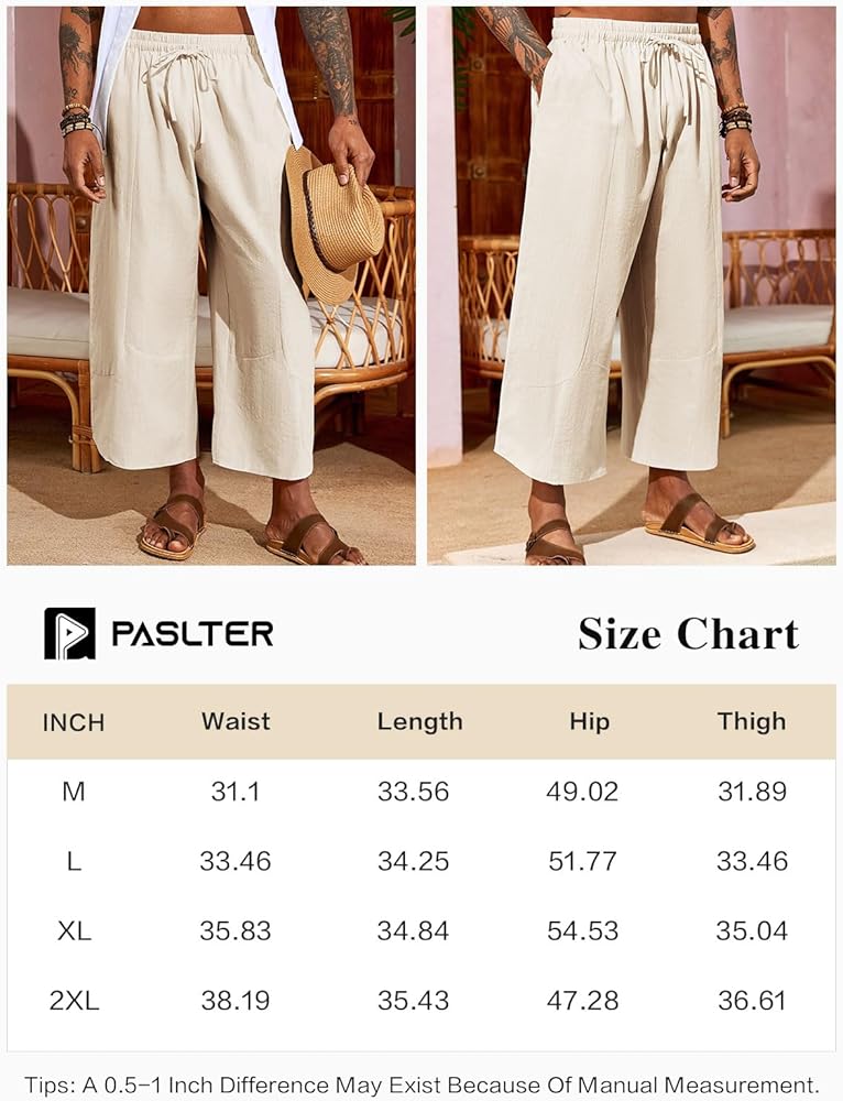 【تصميم أنيق】تتميز هذه السراويل المصنوعة من الكتان القطني الكابري بخصر مرن مع رباط، وساق واسعة، وجيبين جانبيين مائلين، ومقاس فضفاض ولون ثابت، مما يسمح لك بأقصى قدر من الراحة ويجعلك تبدو رائعًا في وقت فراغك.