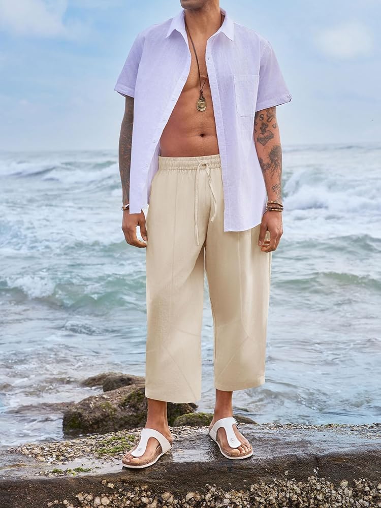 【عالية الجودة】بنطال حريم كاجوال للرجال مصنوع من نسيج الكتان القطني، صديق للجلد، ناعم، مسامي وخفيف الوزن، يبقيك منتعشًا ومرتاحًا طوال الوقت، خاصة في الصيف الحار.