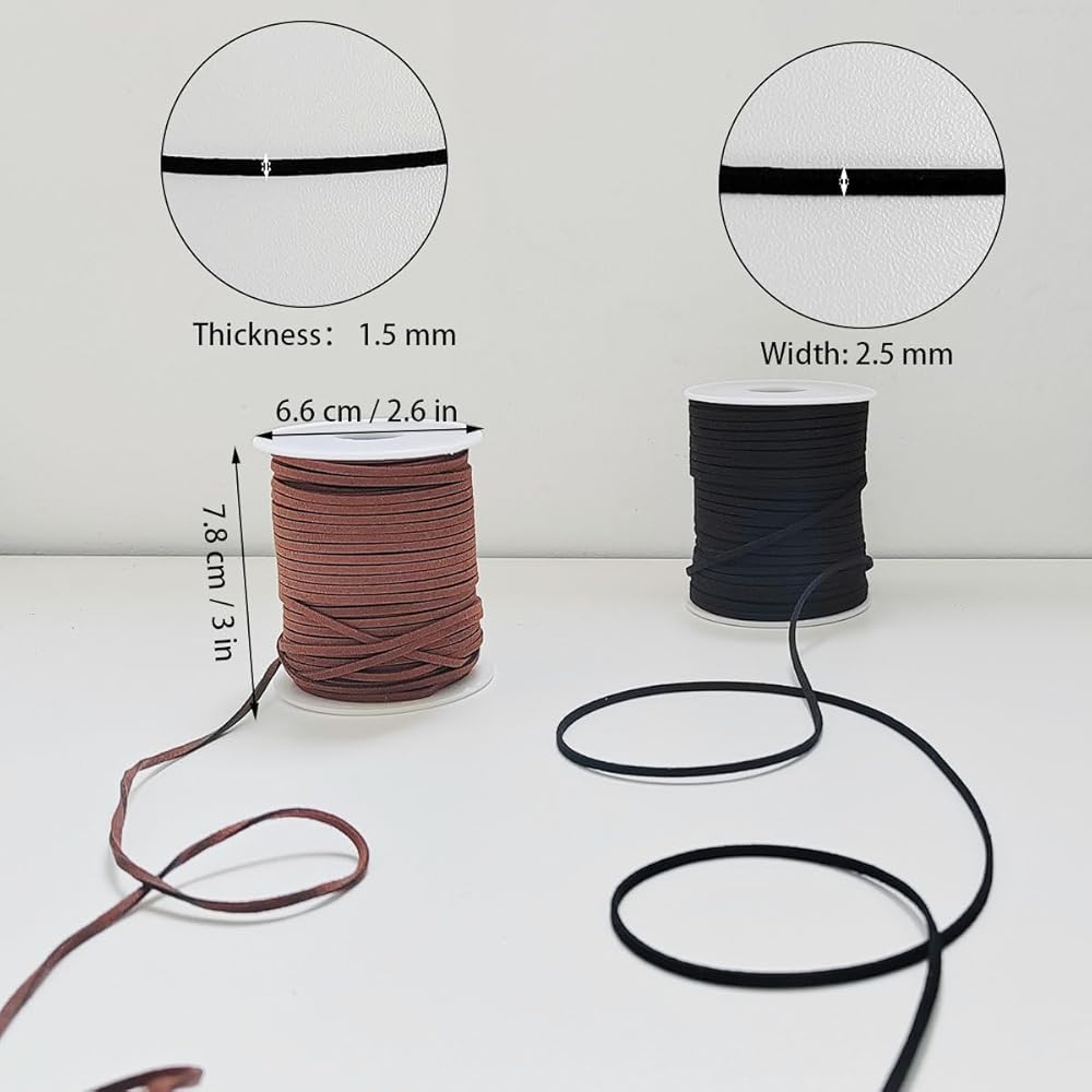 تشمل العبوة: سوف تحصل على لفتين من الدانتيل السويدي (خيط من الجلد الأسود وحبل من الجلد السويدي القهوة)، لفة حبل من الجلد السويدي الصناعي بسمك حوالي 1.5 مم، وعرض 2.5 مم تقريبًا، وطول حوالي 150 قدمًا لكل لفة، مع 2 لفافة يبلغ إجمالي طولها حوالي 300 قدم، كافية لمشروعاتك اليدوية المتعددة.