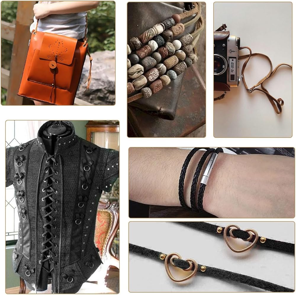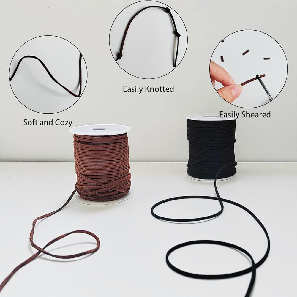 خامة عالية الجودة: مصنوع من الجلد الصناعي، هذا الحبل المصنوع من الجلد الصناعي ناعم ومريح ولا يوجد به تجاعيد. قابل للغسل وذو ألوان ثابتة، ويمكن التعامل بسهولة مع سلك من الجلد السويدي الصناعي للتضفير والعقد والنسيج