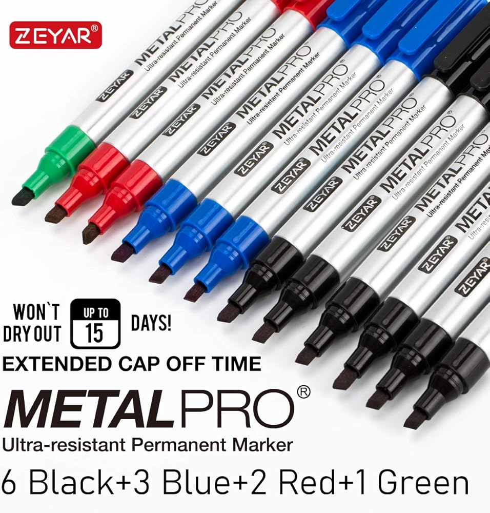 الولايات المتحدة الأمريكية العلامة التجارية ZEYAR. متعدد الاستخدامات: حجم متوسط دائم مع خطوط واسعة وواضحة للغاية، يتيح لك طرف الإزميل اللباد وضع علامة أو الرسم على المموج والخشب والجلد والمعادن والصخور والبلاستيك والسيراميك وجميع الأسطح تقريبًا، في الظروف الرطبة أو الزيتية.