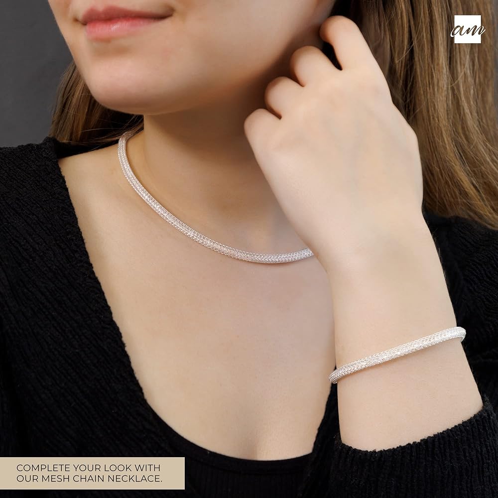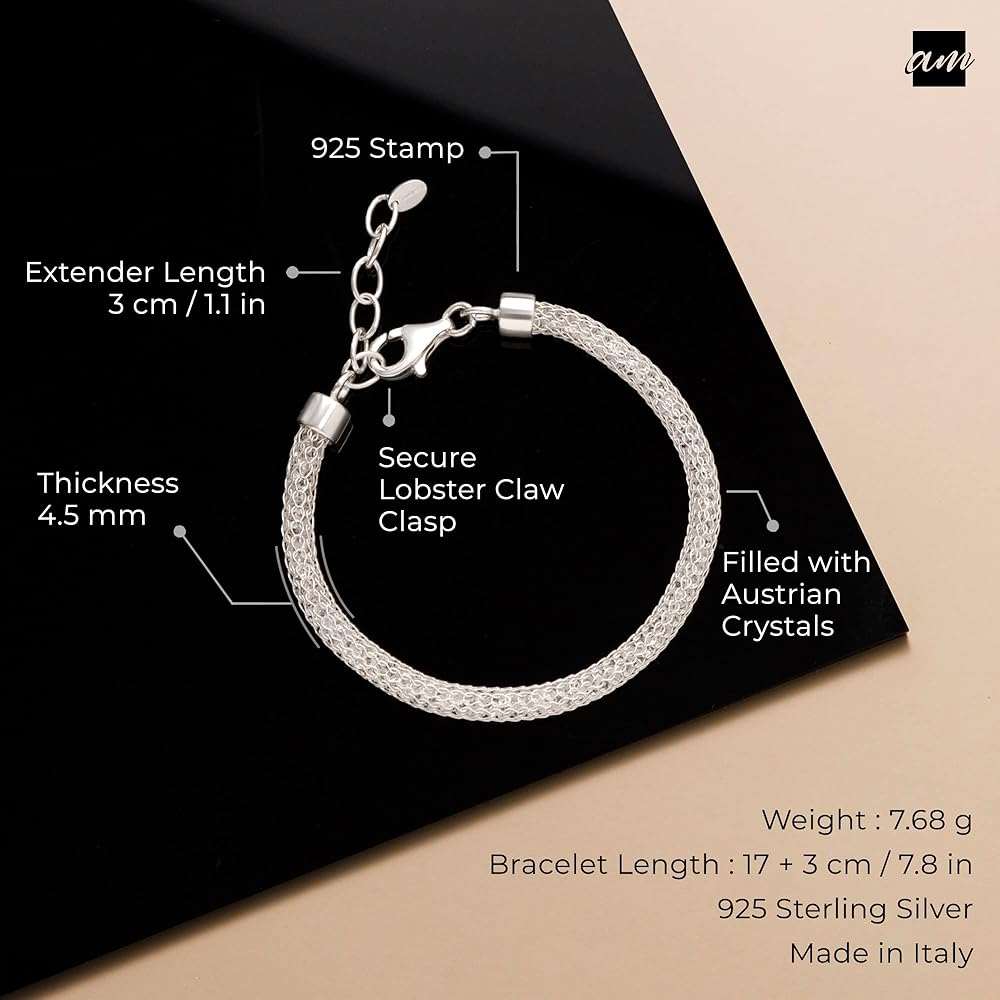 سوار شبكي فضي - متوفر من الفضة الإسترلينية عيار 925 عالية الجودة مع مشبك قوي، هذا السوار الفضي مصمم ليدوم طويلاً. السوار الماسي للنساء خالي من النيكل وغير سام ومقاوم للتآكل. مع السوار الشبكي المصنوع من الفضة الإسترلينية، نقوم بتضمين شهادة الأصالة. تتميز البلورات الاصطناعية لدينا بأعلى مستويات الجودة، وتملأ السوار الشبكي بلمعان يدوم طويلاً. إنها الإضافة المثالية لمجموعتك التي يمكنك الاستمتاع بها لسنوات قادمة.