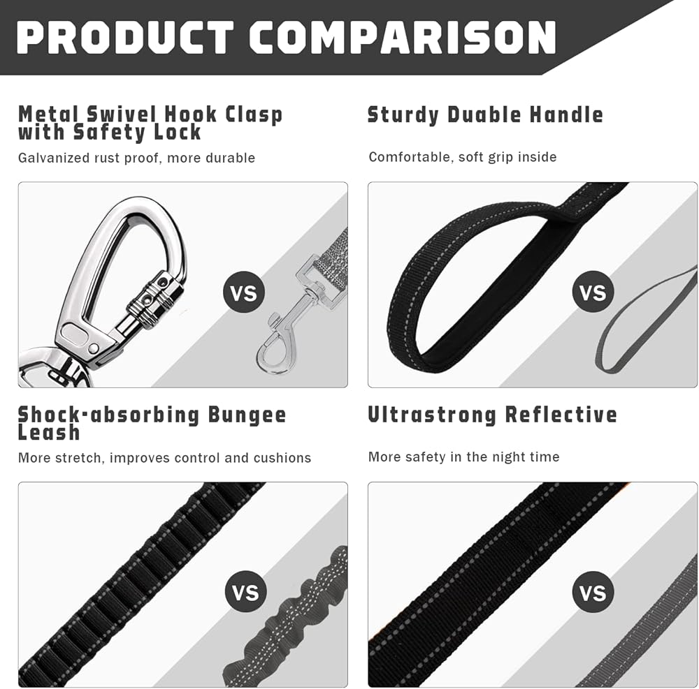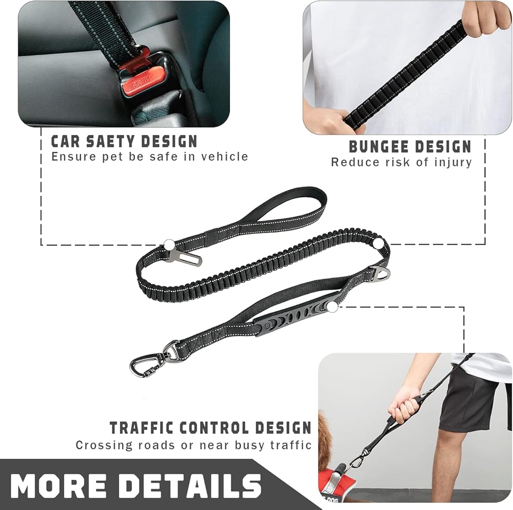 🐶【تصميم بنجي】تصميم بنجي مضاد للصدمات مع قوة سحب قوية لتحسين الوسادة وقوة الشد، وتخفيف الضغط لكل من المالك والكلب، ويوفر مساحة وحرية أكبر لكلبك، كما يقلل من الشعور بالسحب. مما يمنح كلابك مساحة كافية للركض أمامك أو بجانبك. الحد الأدنى 4 قدم إلى الحد الأقصى 6 قدم.